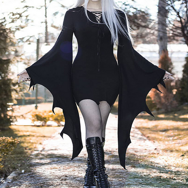 🎃Halloween Sale-Women's Bat Sleeve Bandage V-Neck Dress