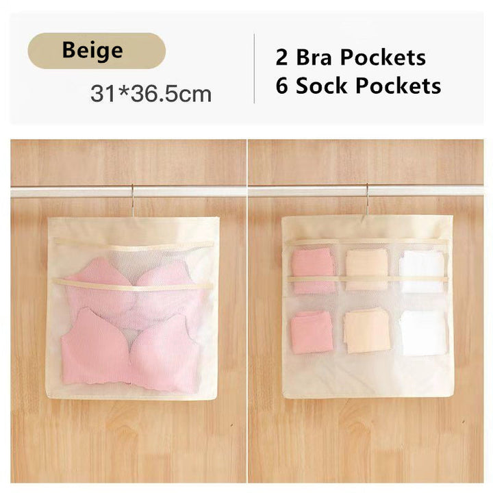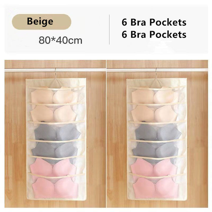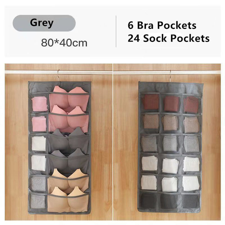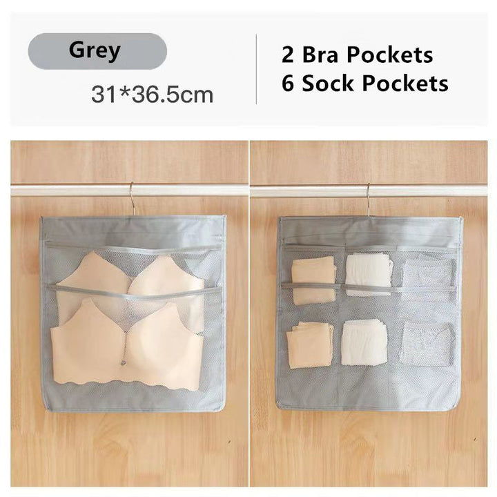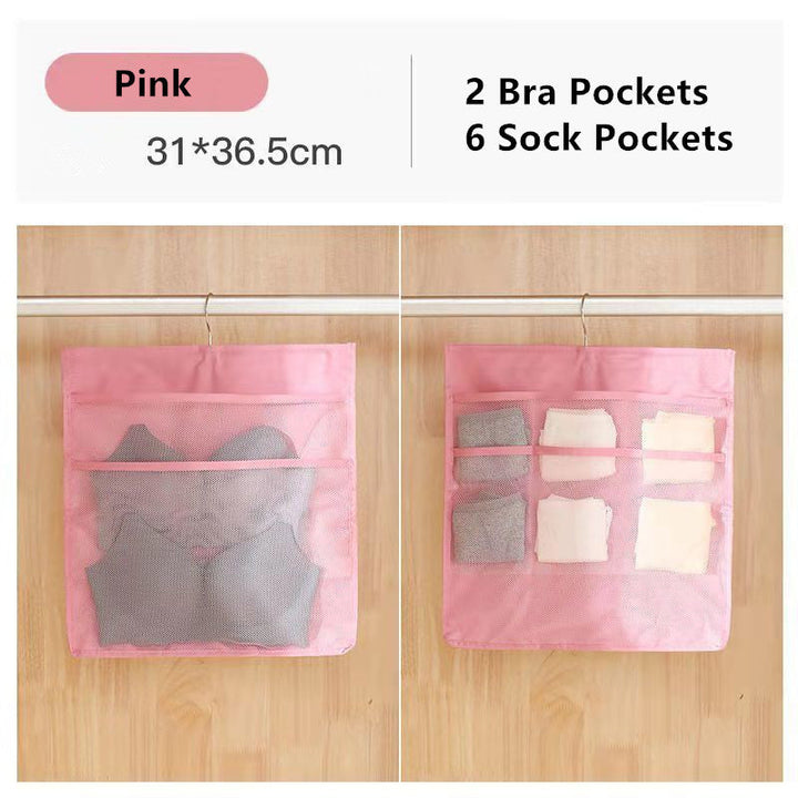 It is convenient to put it anywhere with a hanger to store all small parts, such as underwear, bra, socks, remotes, glasses, jewelry, chargers, mail, bills, keys, smaller notepads of paper, some pens, envelopes, etc that were always lost around. it can roll up for easy carry, perfect for travel use.