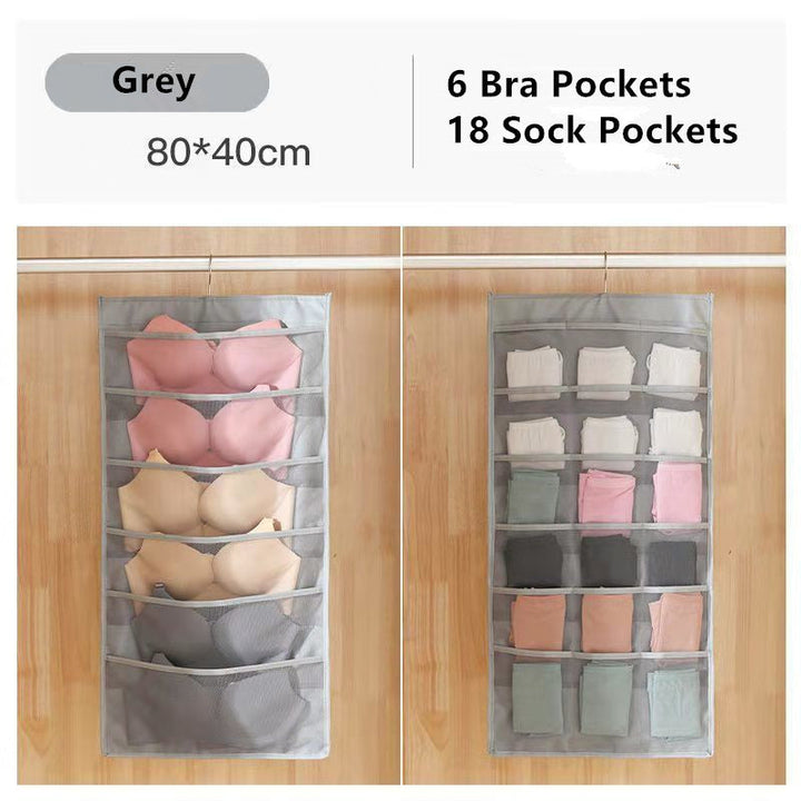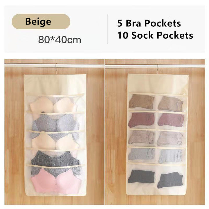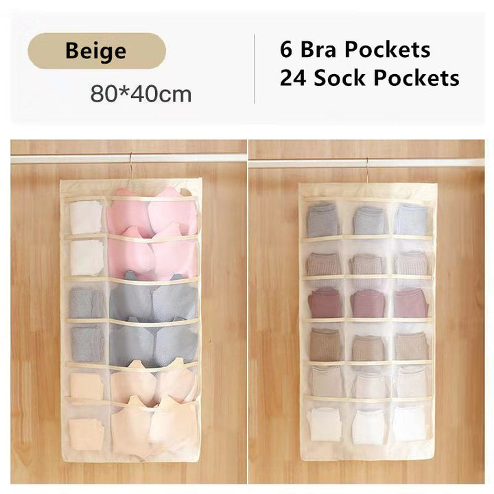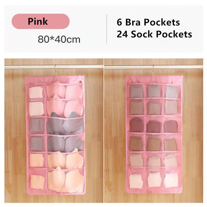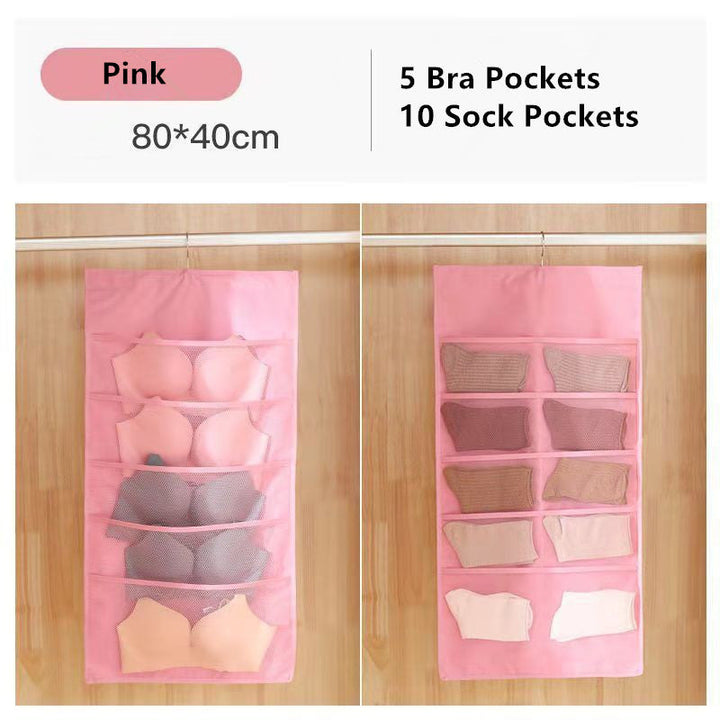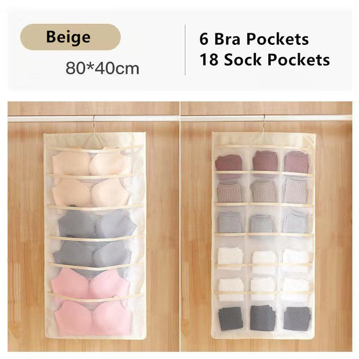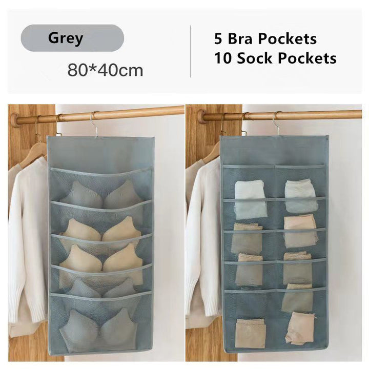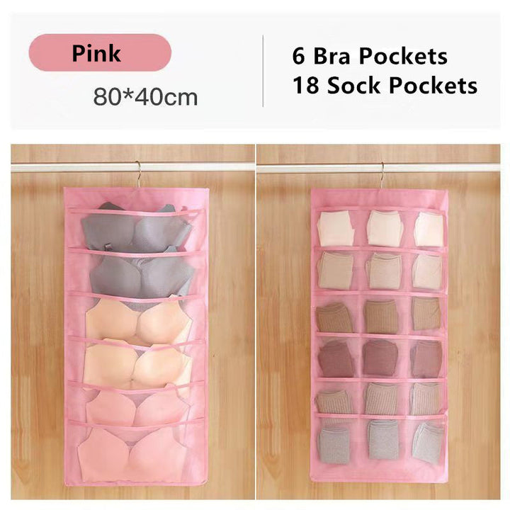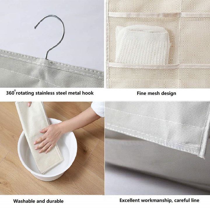 Durable double sided closet hanging organizer, Breathable mesh premium oxford fabric design helps you quickly identify stuff through clear pockets, saving you time from blind searching.