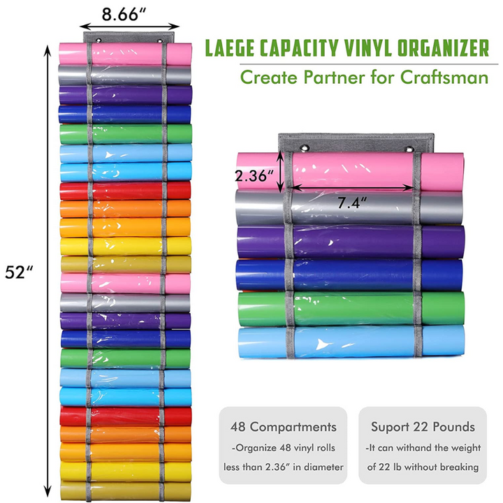- 【EASY TO USE】Vinyl roll storage rack is an independent storage space sewn by PVC material, which is convenient for loading and unloading without affecting other compartments, making vinyl rolls clear at a glance.