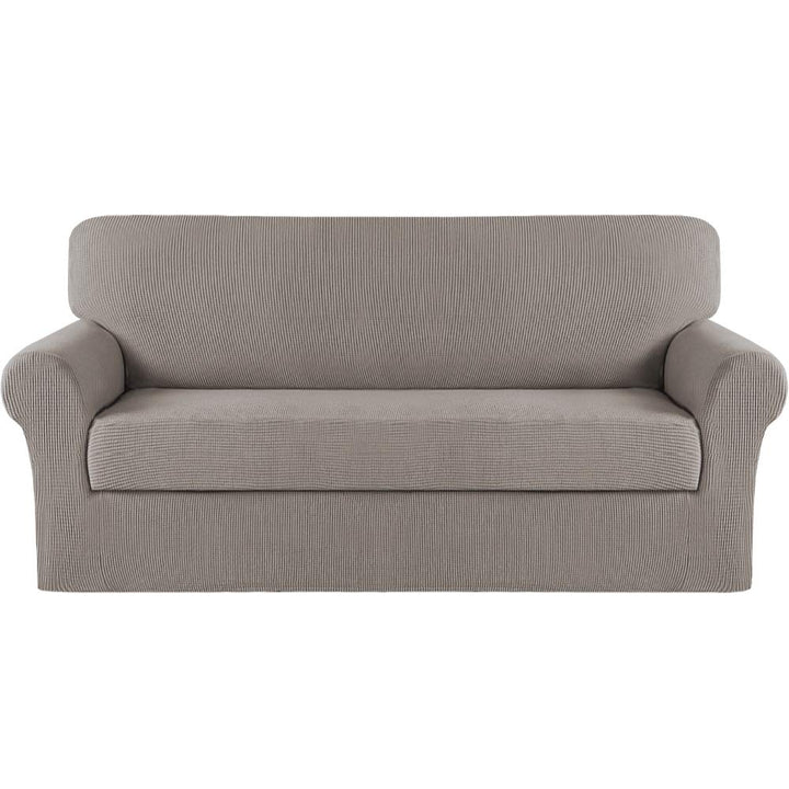 I am extremely pleased with these covers! We purchased the sofa and loveseat covers. They are replacing covers that we had purchased from a big box store and are of a much better quality. They are thicker, and the check pattern has a classier look than the waffle weave that we had before. The fabric is very soft and super comfy to sit on. Installation was a breeze; it only took about 5 minutes for this old chick to do by myself. I just put it over the furniture, pulled it down, and then made some fine adjustments to line up the seams. I especially liked having the separate cover for the cushions; it gives it a much more polished look than the one piece covers. We have multiple cats and while they will scratch the uncovered furniture they don't try scratching the slipcovers so they really extend the life of our furniture. I also lay a little blanket where one cat likes to lay so I can just remove it when company stops by so their clothes stay fur free. Another plus is the color selection. The big box store only had one or two colors so we were stuck with beige that didn't look good with our color scheme. We chose the taupe color for our new covers and it looks great with our weathered finish furniture and the grays we have in the rug. I really couldn't be happier with these covers and highly recommend them.