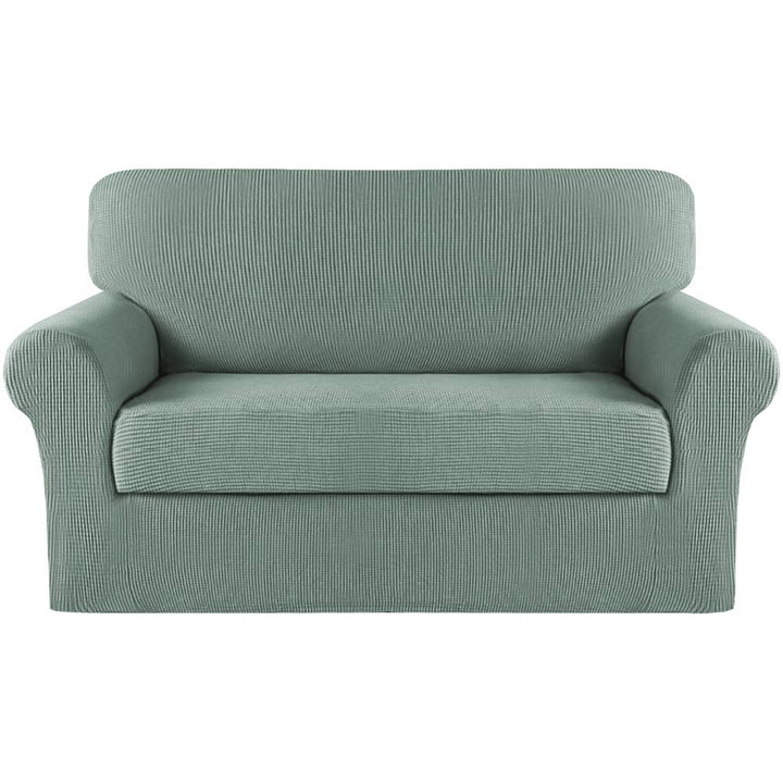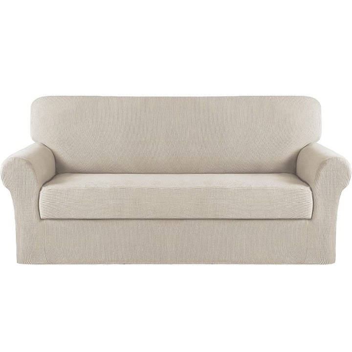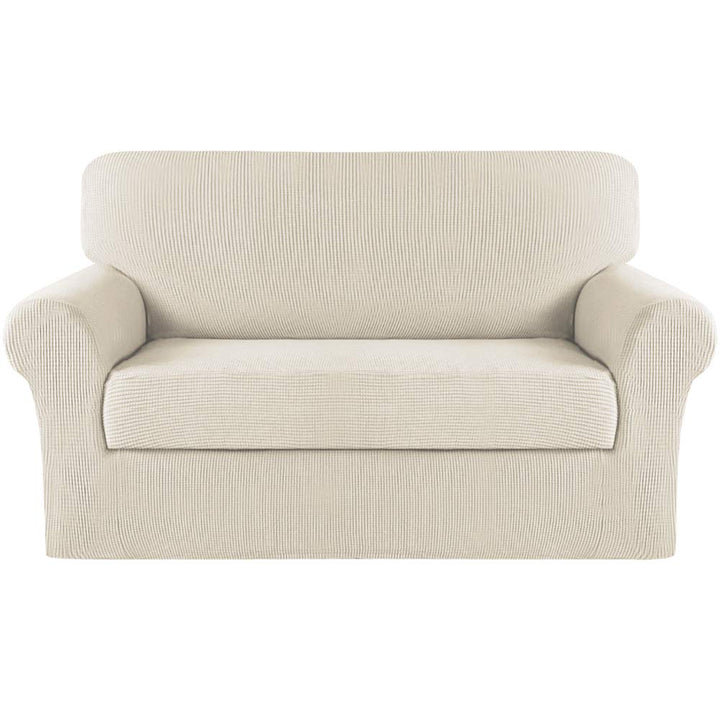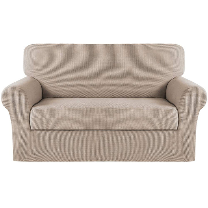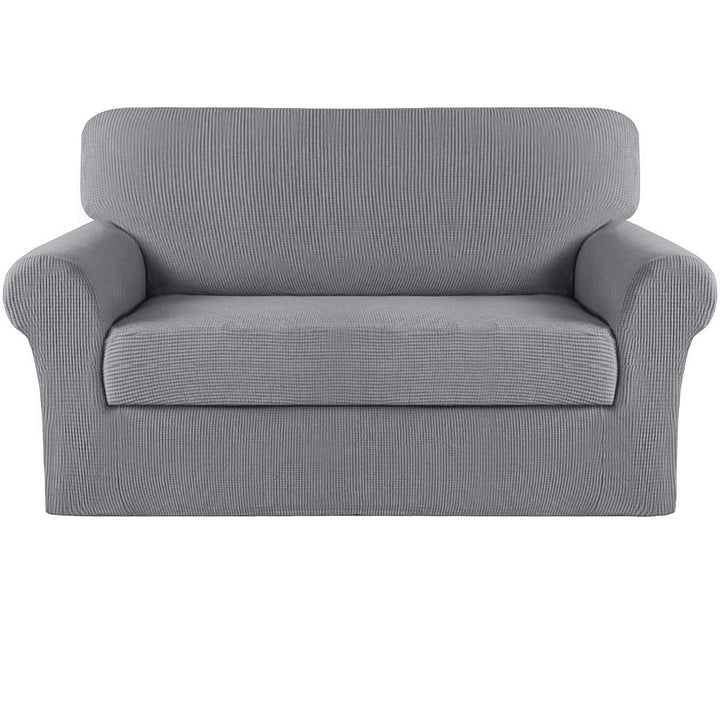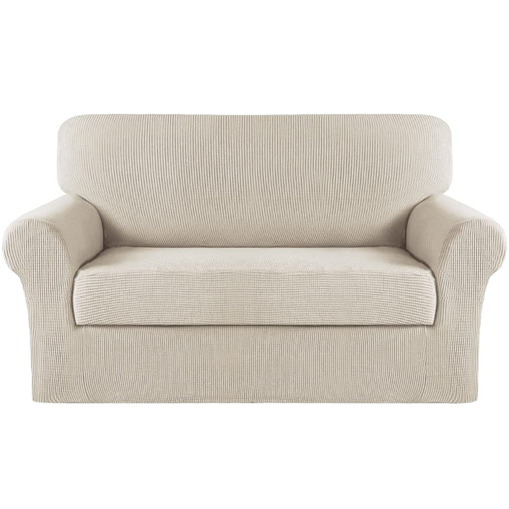 I never write reviews, but given the research I had to do to find a good couch cover, I had to write this one. This cover is GREAT; it is so so soft, easy to put on, and just nice looking. It's not cheap looking like most covers are. We got a horribly ugly, but comfy, couch given to us and we needed a cover to save it. This cover met all expectations. Our loveseat exceeded the max sizing but it still fits like a glove except in the back, which faces the wall anyways. We are so so pleased with it, highly recommend!!!