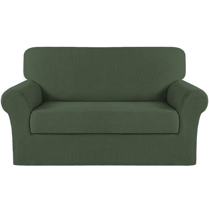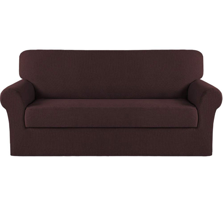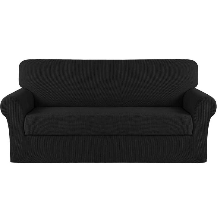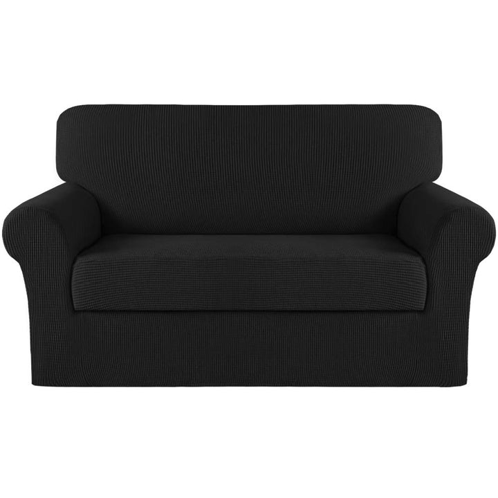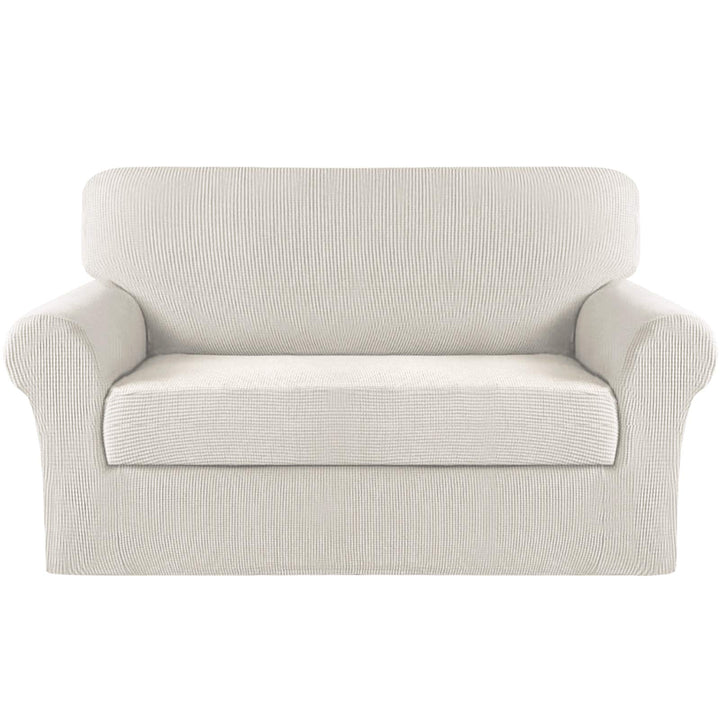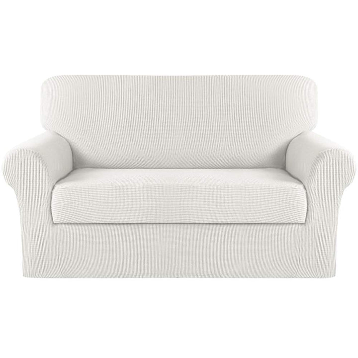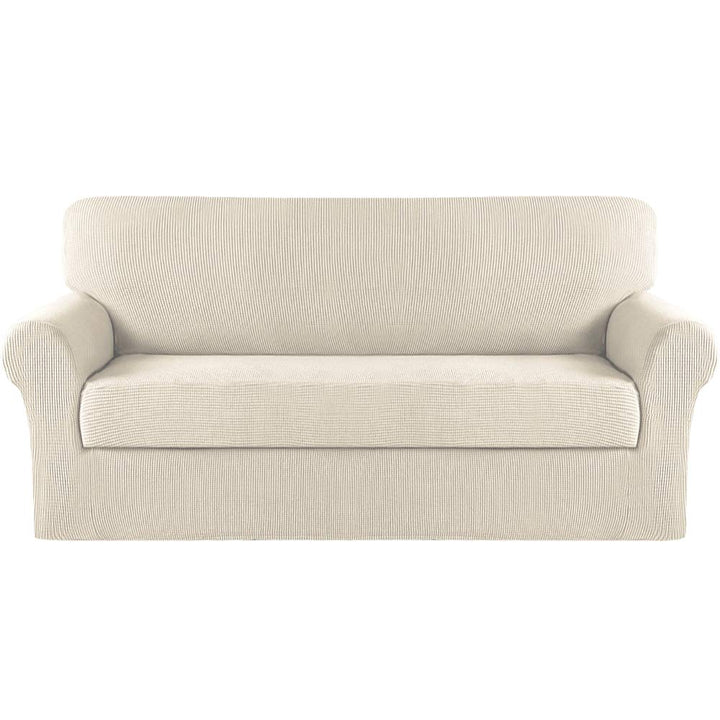 I never write reviews, but given the research I had to do to find a good couch cover, I had to write this one. This cover is GREAT; it is so so soft, easy to put on, and just nice looking. It's not cheap looking like most covers are. We got a horribly ugly, but comfy, couch given to us and we needed a cover to save it. This cover met all expectations. Our loveseat exceeded the max sizing but it still fits like a glove except in the back, which faces the wall anyways. We are so so pleased with it, highly recommend!!!