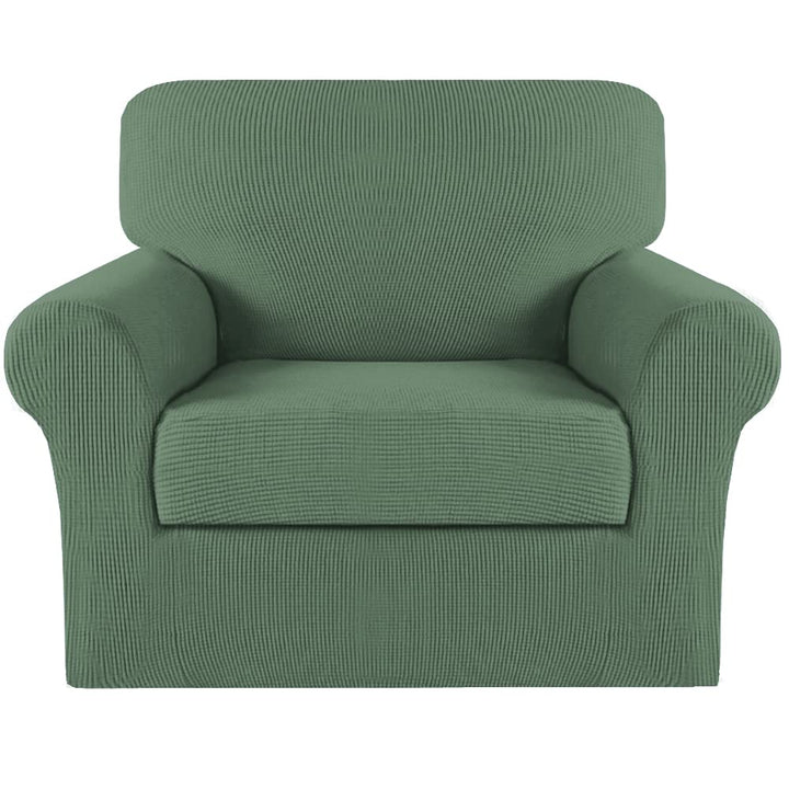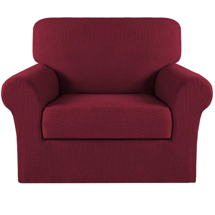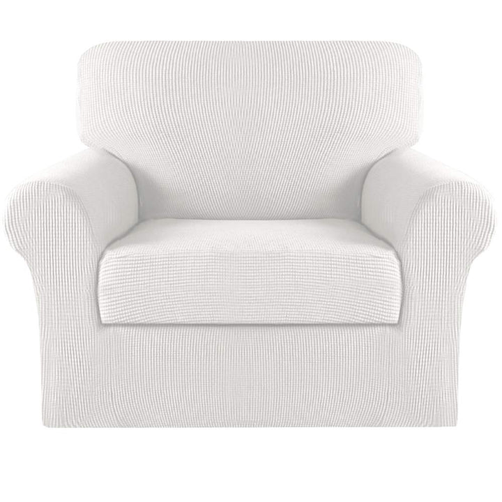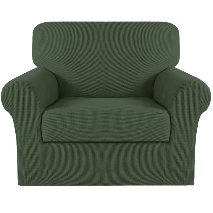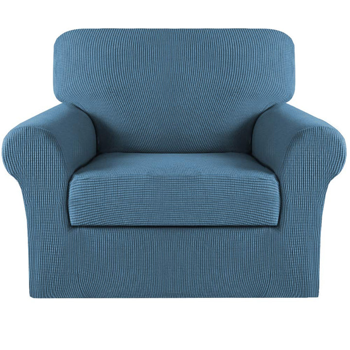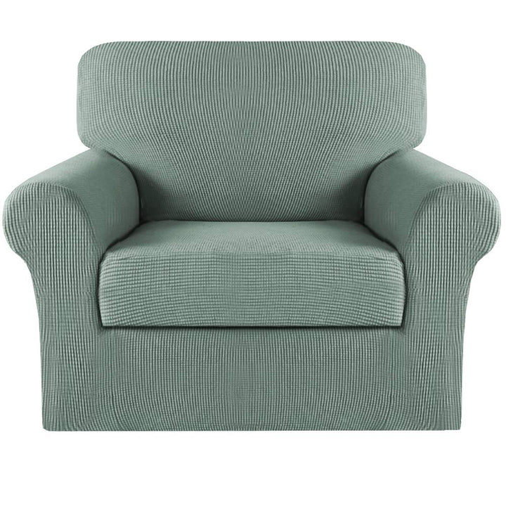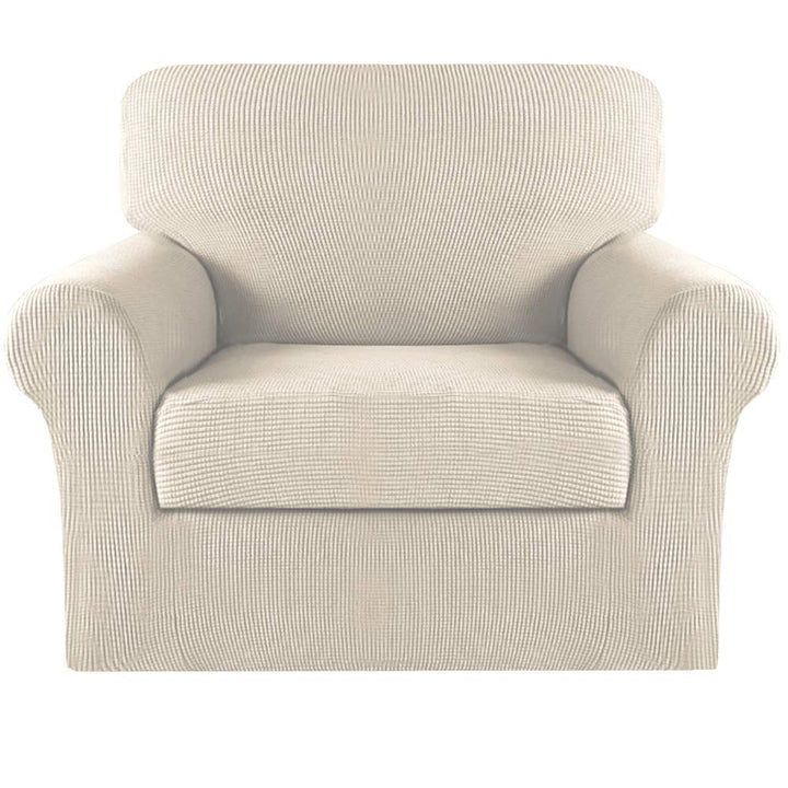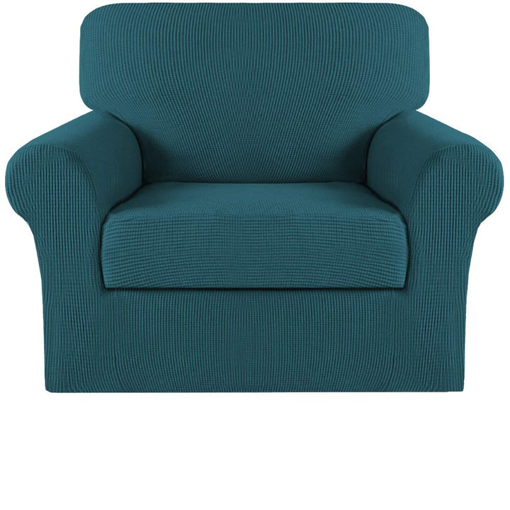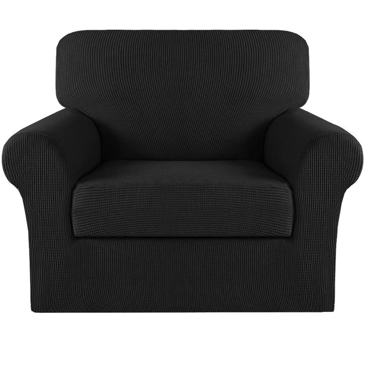 Fit an xl armchair. Chair was 3 pieces but this 2 piece set fit perfectly. I was going to replace the chair, but now it looks new.
