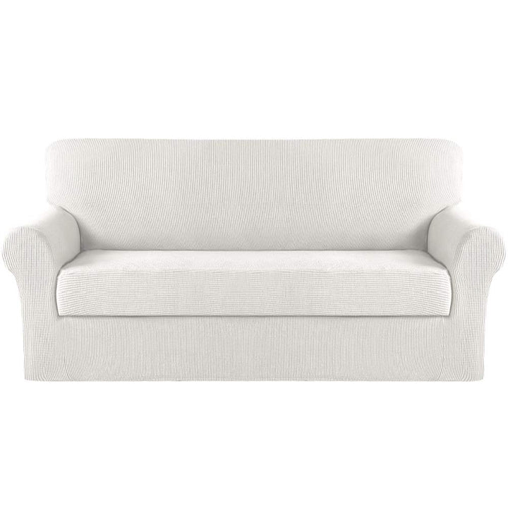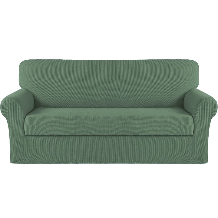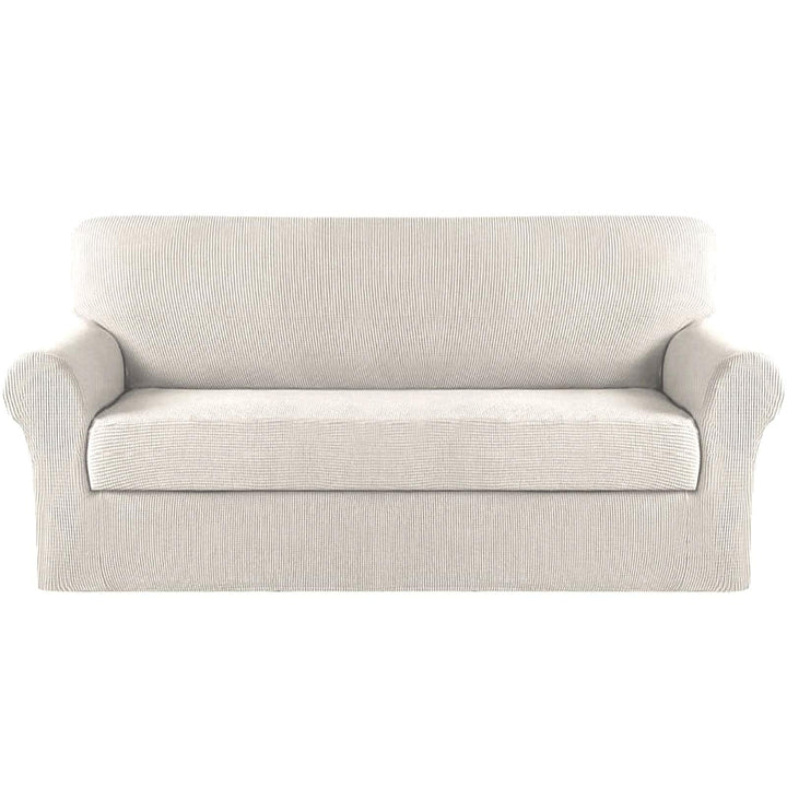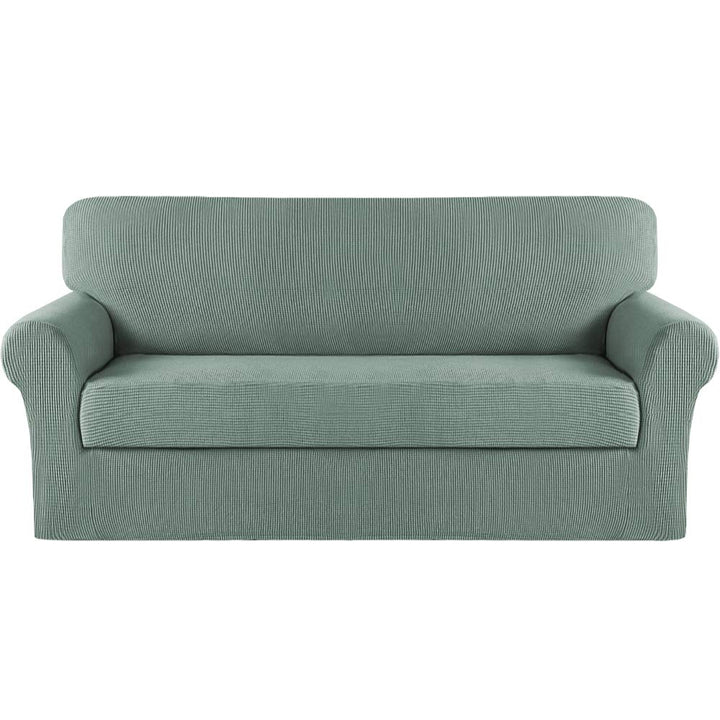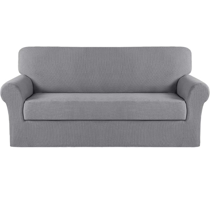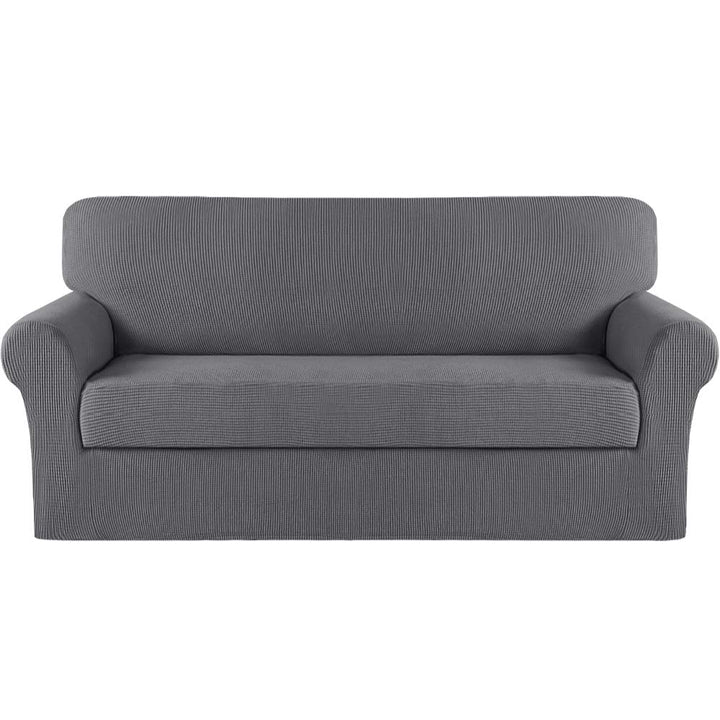 We have two Walter E Smith fabric sofas which we requested them not to be treated with Scotchgard, to reduce chemicals inside home. Also we have little kids, and our fabric furnitures always need slip covers. We had other brand slip overs before and it looked great but never stayed in place. It was a hassle to always tuck it in and looked messy when it was out of place.This has two stretchable pieces and stays in place. Even if the seat cushion cover moves a bit after many days, it’s easy to adjust as there is nothing to be tied or pinned. We ordered one at first, loved it and ordered the second one soon. It’s worth the $70. Hope this is durable as well. Will update if anything changes after washing these.Would order more if the manufacture sells similar stretchable ones in fabrics with elegant patterns.