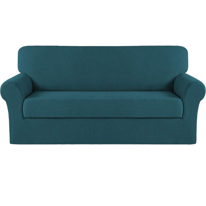 I ordered the deep teal color cover and its amazing! I haven't had much wear and tear yet, but mainly got the cover to protect a new couch from a puppy who sometimes likes to climb over the couch. The cover fits my couch perfectly and looks great! I love the deep teal color and the cover's softness. The cover has stayed in place and is easily installed. It probably took me 15 minutes by myself to install. I'm not sure how water resistant it is, as I have not spilled anything on it yet. Only time will tell how long it will stand up, but I love it so far!