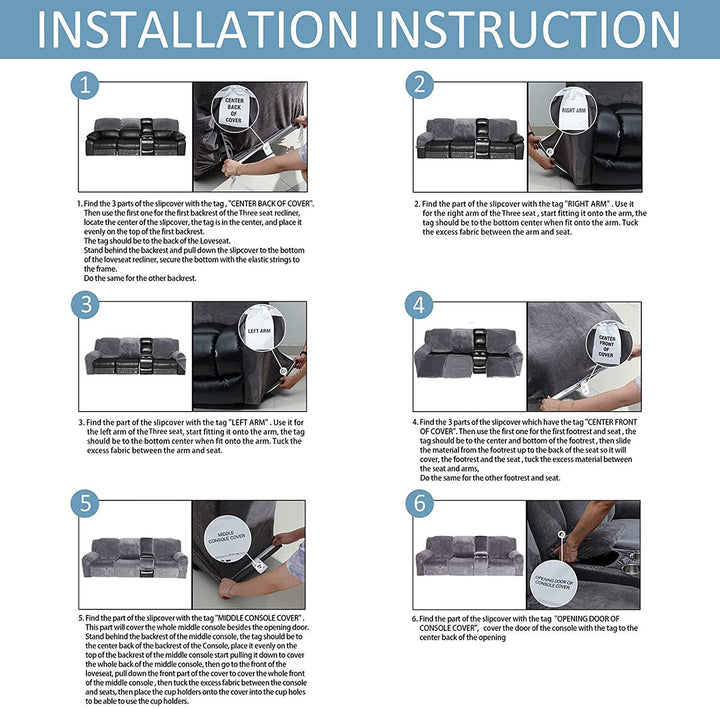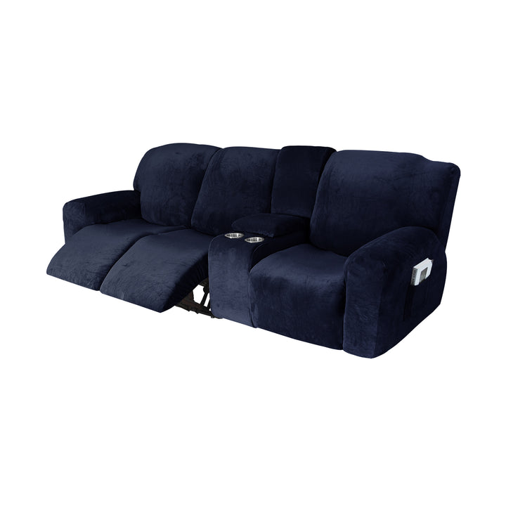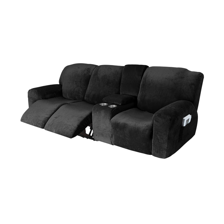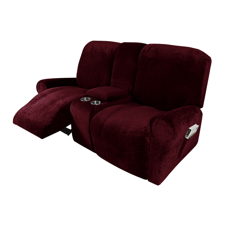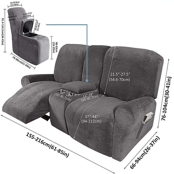 I have a couch that reclines on both ends and was worried that a cover couldn't cover the reclining parts. I have cats so I really wanted to cover my new couch. This cover came in 8 pieces so I thought maybe we could make it work. It did take 2 of us a couple of hours to put it on the couch but it was well worth it. It looks like it was professionally covered and feels better than the original couch texture. It was a great buy.