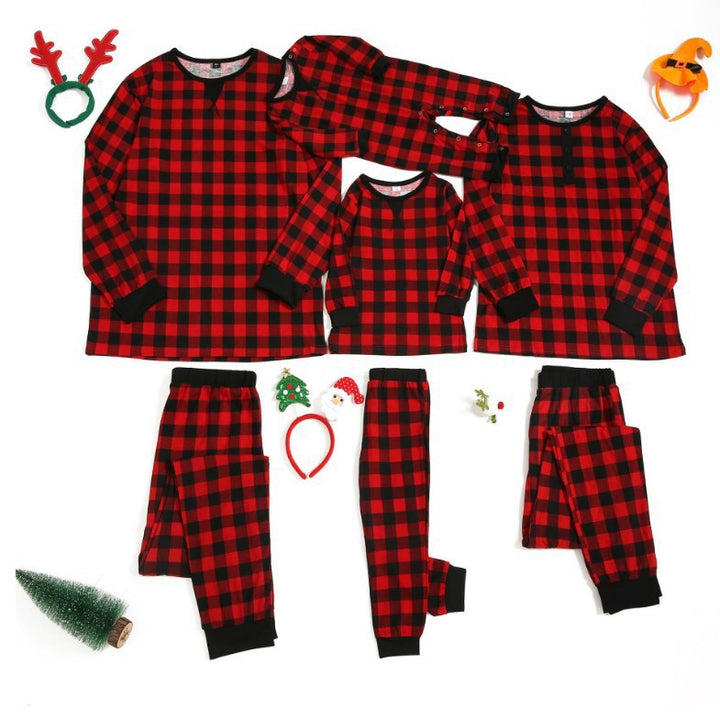 Family Matching Plaid Round Neck Christmas Pajamas Set