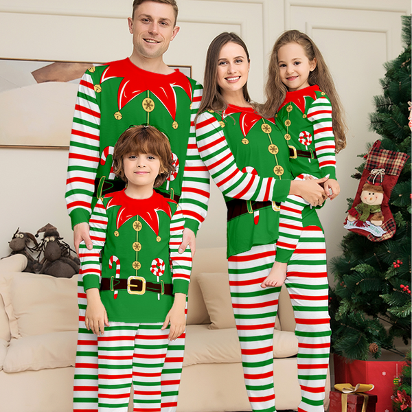 Christmas ELF Print Striped Family Matching Pajamas Set
