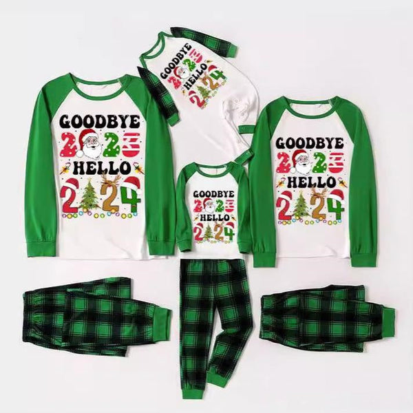 Family Christmas Pajamas Christmas Tree Santa Letter Print Green Set