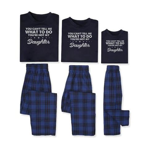 - Pijama negro con palabras especiales "No puedes decirme qué hacer". Pantalón a cuadros azules fácil de llevar, cálido y ajustado para ti. Buena elección si te quedas en casa usándolos.