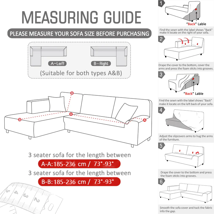 Highly recommend this slipcover for l-shaped sectional sofas that need a "new life" - our sofa is sturdy & comfortable but the upholstery is worn. Problem solved! The two slipcover pieces fit well, with just the right amount of stretch. Easy to install. Why buy a new sofa when an such an affordable re-do covers all the bases... ?