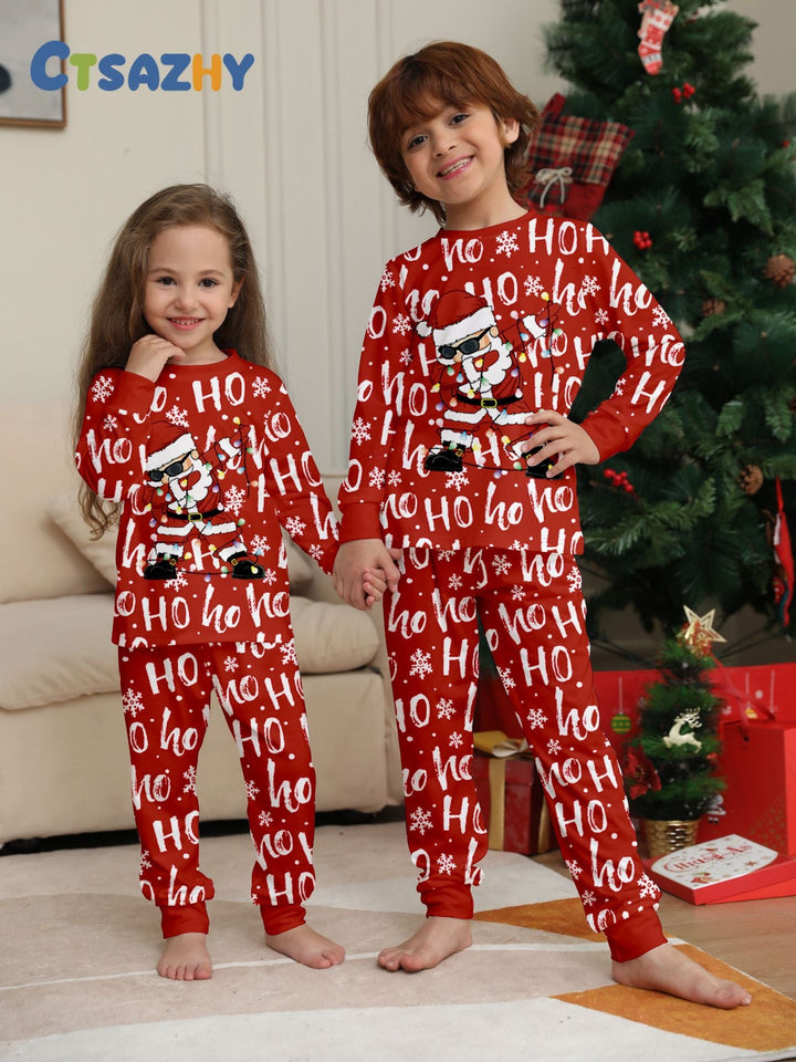 Superman Pose Lights HO Print Pajamas New Year Family Christmas Pajamas