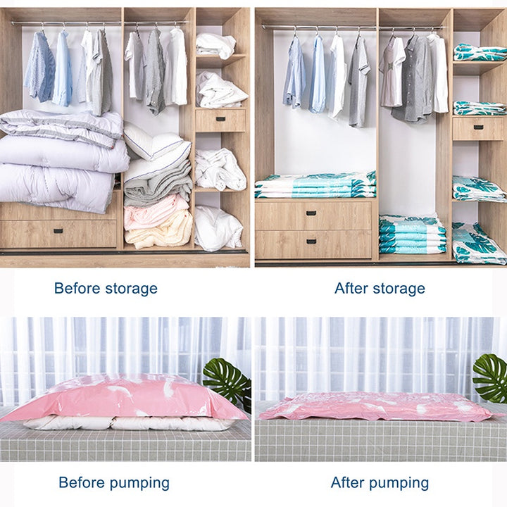 【साफ और व्यवस्थित रखें】: 80% तक जगह बचाता है और कपड़ों को व्यवस्थित रखने में मदद करता है। अलग-अलग साइज़ आपको कई अलग-अलग चीज़ें स्टोर करने की सुविधा देते हैं। न केवल यात्रा के दौरान कपड़े, बल्कि घर पर तकिए, कंबल, रजाई, चादरें भी। यह कोठरी या सूटकेस भंडारण के लिए एक बढ़िया विचार है।