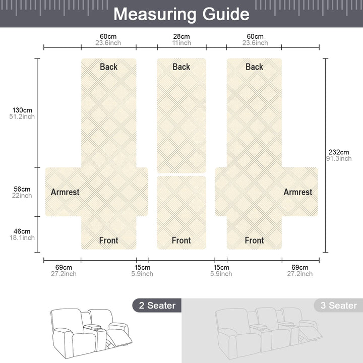 Furniture Protector: Sofa covers reclining are perfect for protecting your furniture from kids, scratches and fur from pets, dogs or accidental leaks. The unique diamond pattern design of recliner couch covers 2 seat gives your old furniture brand new look.