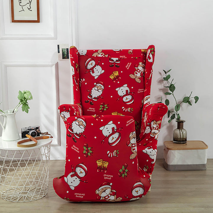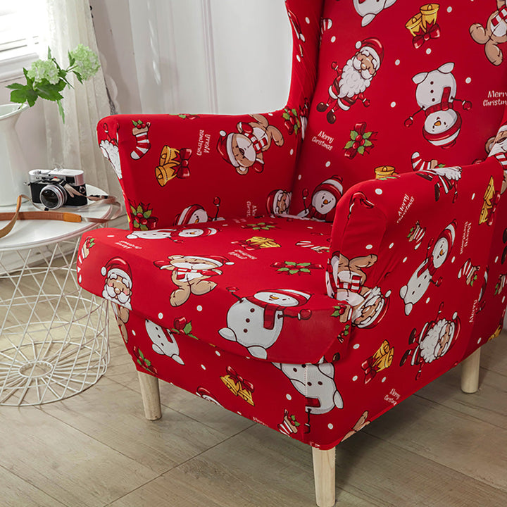 2 Piece Stretch Wingback Chair Cover For Living Room Bedroom (Spandex Print & Velvet)