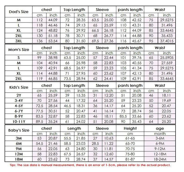 Styles for the Whole Family Comes in sizes for adults, boys, girls, toddlers, even provide sizes suitable for your pets, create a perfect match shape during the holiday, create family memories full of laughter, and start matching the pajamas tradition for the whole family!