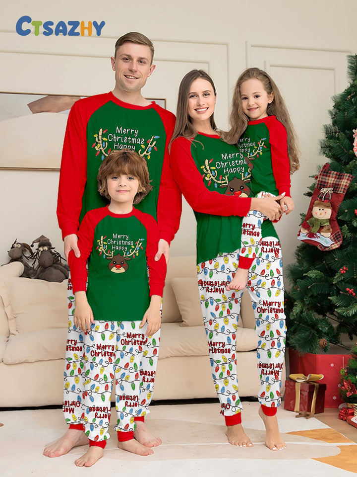 Christmas Antlers Printed Family Matching Christmas Pajamas Sets