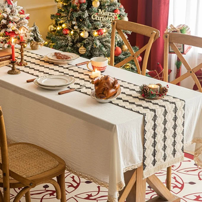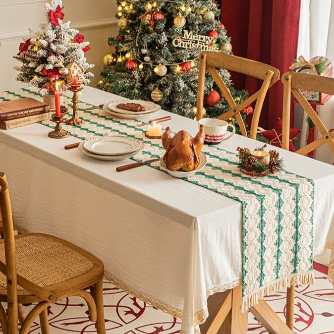 Christmas Table Runner Natural Cotton Knitted Tablecloth