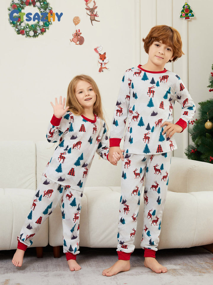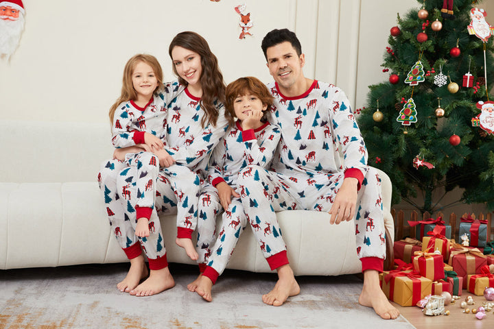 Christmas White Printed Family Matching Christmas Pajamas Sets