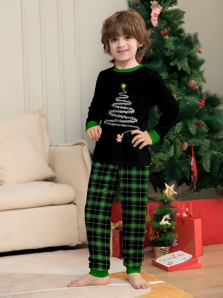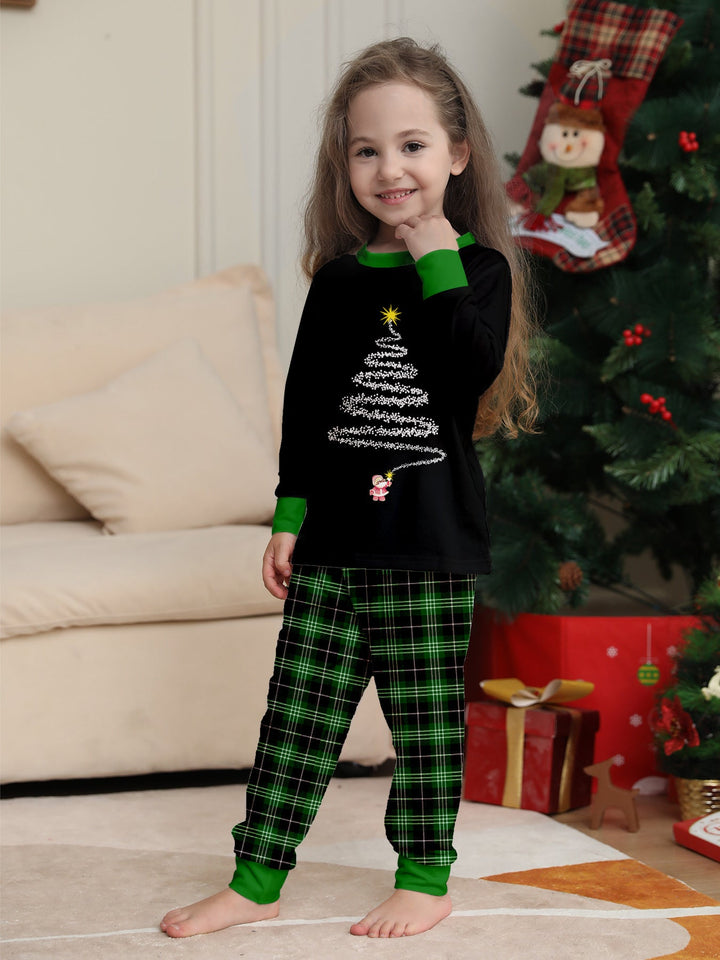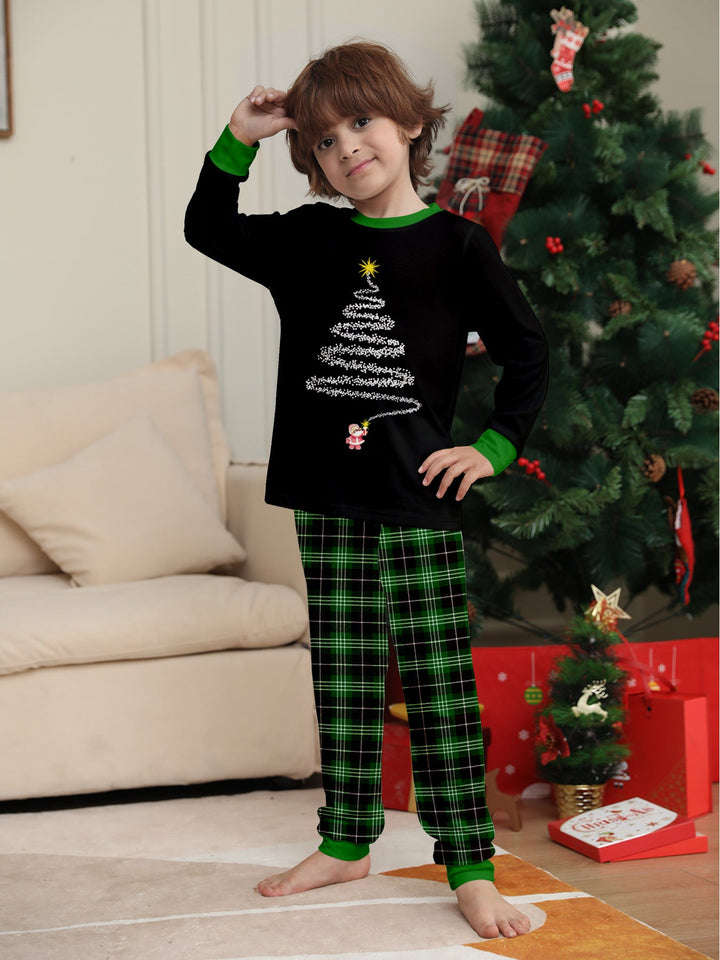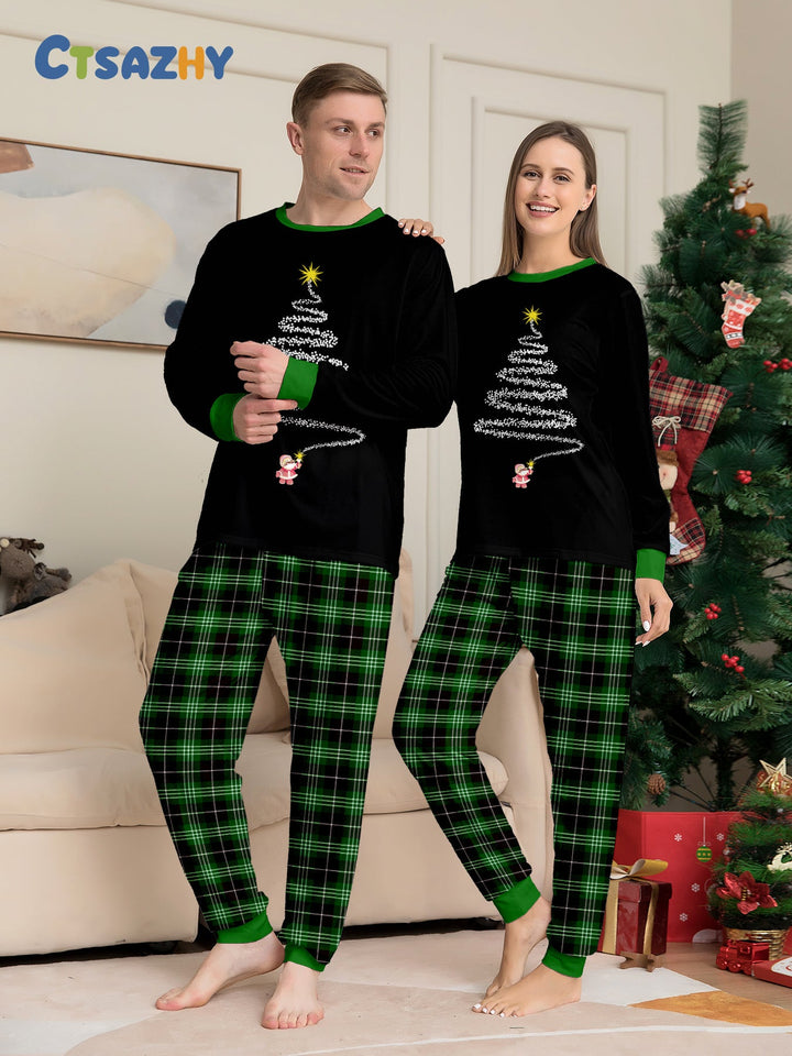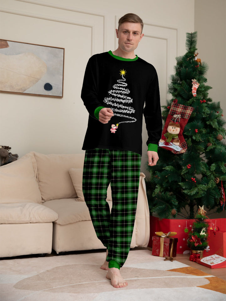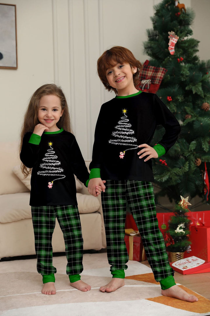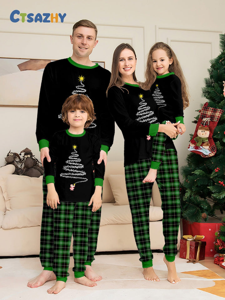 Family Christmas Pajamas Firework Green Plaid Black Loungewear