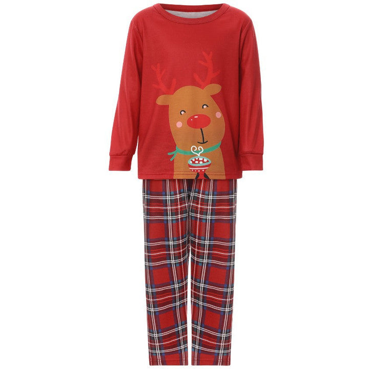 Family Matching Cartoon Deer Plaid Print Family Look Pajama Set