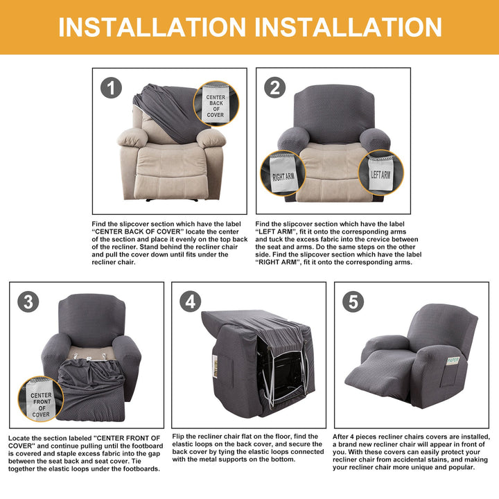✨Soft Material-The recliner chair cover is made of durable and high-durable jacquard knit fabric that is soft and comfortable. Protect your chairs from stains, spills, scuffs and scratches.