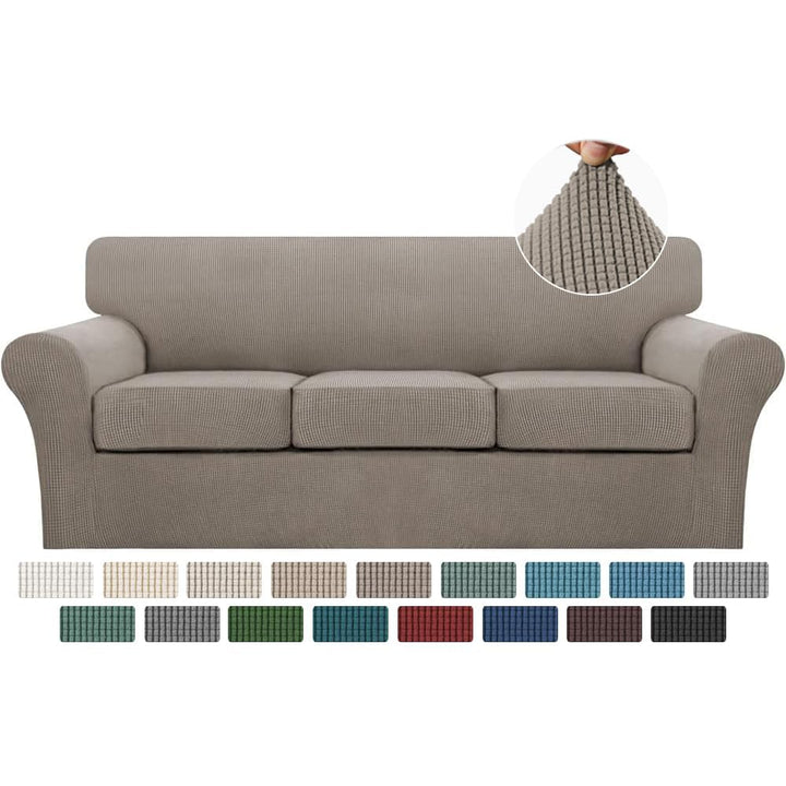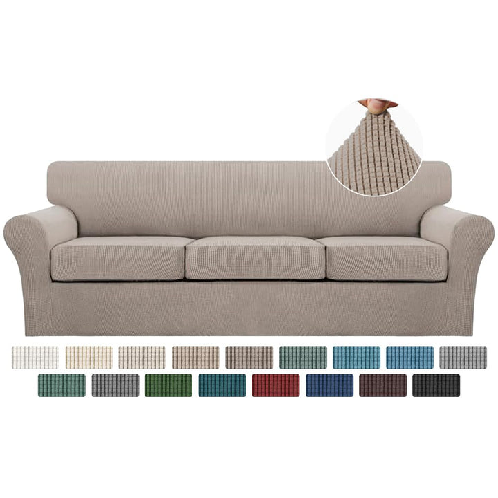 I got this 4 piece in a lighter color to replace a darker one piece. I changed it at the same time I replaced the rugs in my bedroom. I couldn't be happier! I wanted to brighten the room up with lighter colors and this was the finishing touch. This is the sand color. Don't hesitate to purchase this. All of the covers fit perfectly to a 3 seat sofa.