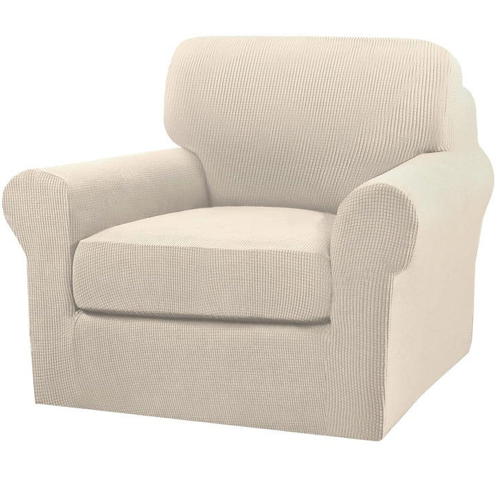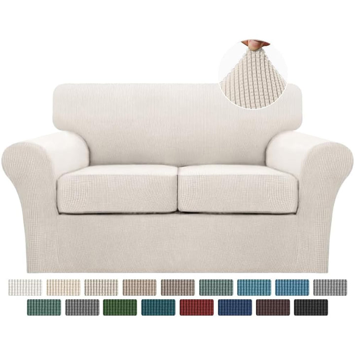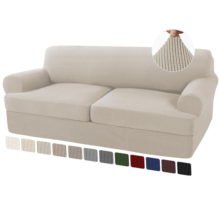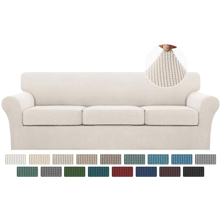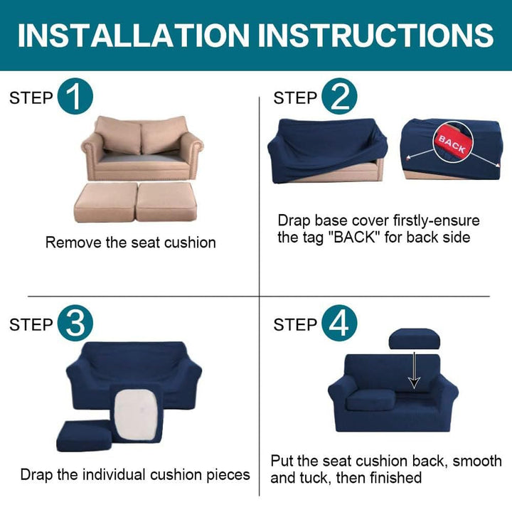 I have a $2,000 Rowe sofa that has been covered with a sheet for 6 years. Got tired of the messy look as I am a perfectionist and was tucking and moving the sheet constantly. Decided to try these covers in ivory, my sofa is natural color denim canvas. Couldn’t get the back cushions neatly u day the body cover so decided to leave them uncovered. Bottom cushions are covered. I think because my sofa has removable back cushions it was impossible. It’s ok though because I love the rest of the cover. I can throw a fuzzy sofa blanket over the back if need be but the arms and cushions are safe from spills etc.