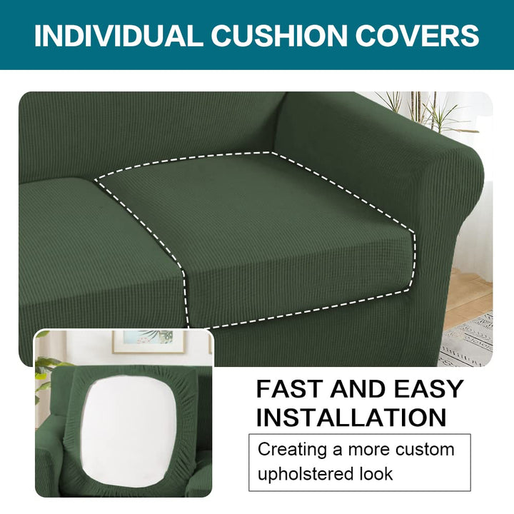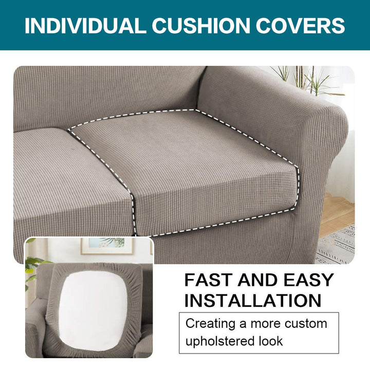 My couch cushions were damaged after washing them, and i thought i would have to throw it out. I bought these covers specifically because they have the individual covers for the cushions, which allows a more uniform look. I am completely amazed at how great it looks!