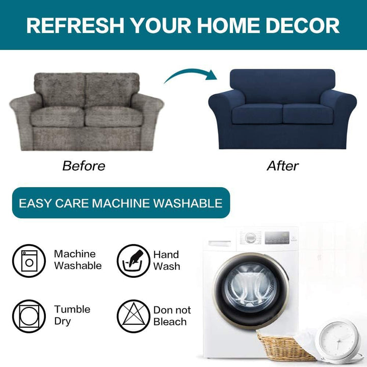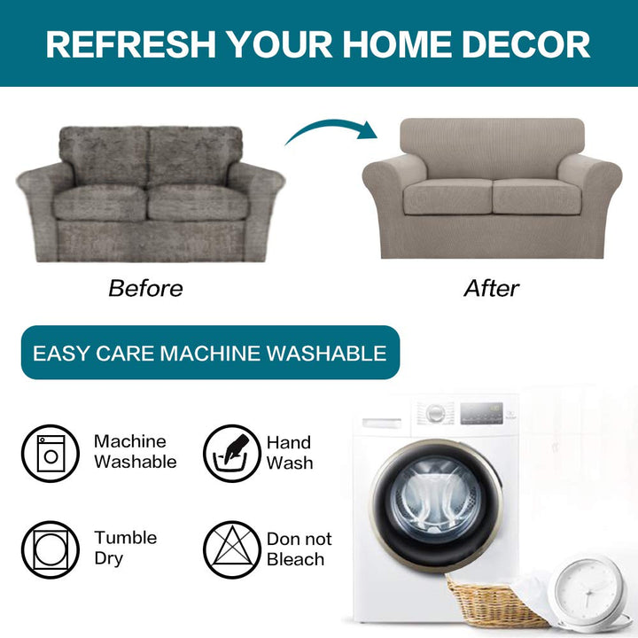 We have an older sofa that our cat ripped up - I have tried the one piece covers and they look fine…as long as no one touches the sofa lol. It finally dawned on me that maybe I need covers with separate cushion covers! This is soooo much better. Everyone can sit on it and throw pillows around and it still looks like a new sofa. I'm thrilled. Did great on a tap cold wash and in the dryer.
