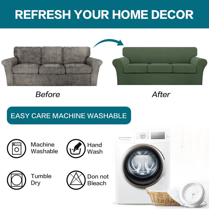 Transformed my livingroom. Fits tightly, stays in place. The color is fantastic, soft, comfortable and easy to wash at the perfect price point. Couldn't be happier.