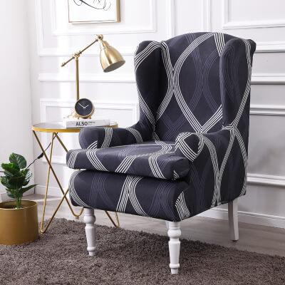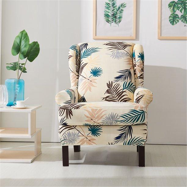 💺【Upgraded 2-Piece Printed Wingback Slipcover】Our wingback chair slipcover is crafted from high advanced soft,breathable,and comfortable,elasticity,elegant,non-slip, wrinkle-resistant Polyester and spandex fabric.Whether your wing chair slipcover is brand-new or decades old,removable arm chair covers will help to keep it looking fresh at all times.