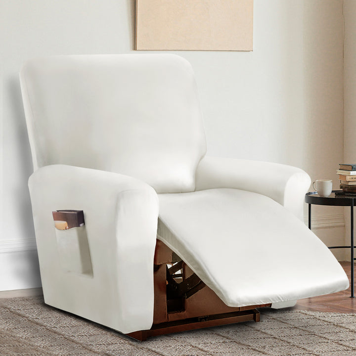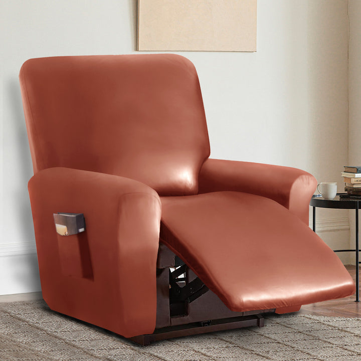 I am very happy I purchased this recliner cover. I have a recliner that was damaged by a roommate's cats only a few months after I bought it. I tried to save it by purchasing a chair cover, and previously purchased a cloth cover that looked good in the package, but was absolutely horrible! It was extremely difficult to put on the chair because it did not stretch well and we could not figure out which side each "arm" piece belonged on. It also collected lint and pet hair, and it only got worse after I washed it. This cover has been the complete opposite of that one - and it was less expensive. The material stretches, making it easy to put on. Each piece is marked to assist in determining where it should go. It feels smooth and comfortable, and I think it looks great! I am finally able to enjoy my recliner again! I highly recommend this product.