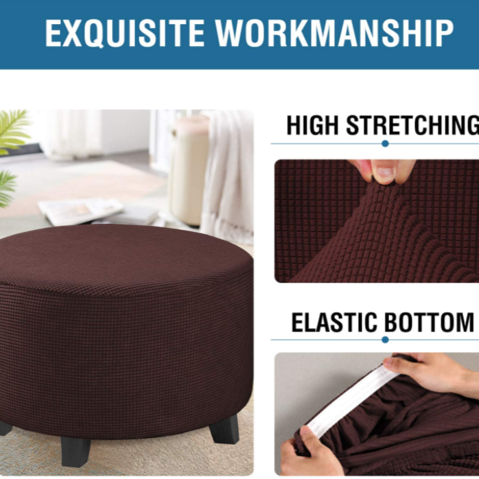 GREAT FIT: This innovated 1 piece ottoman cover is crafted from durable and soft high stretch knitted jacquard fabric. Suitable for most round and 5 sided storage ottomans.