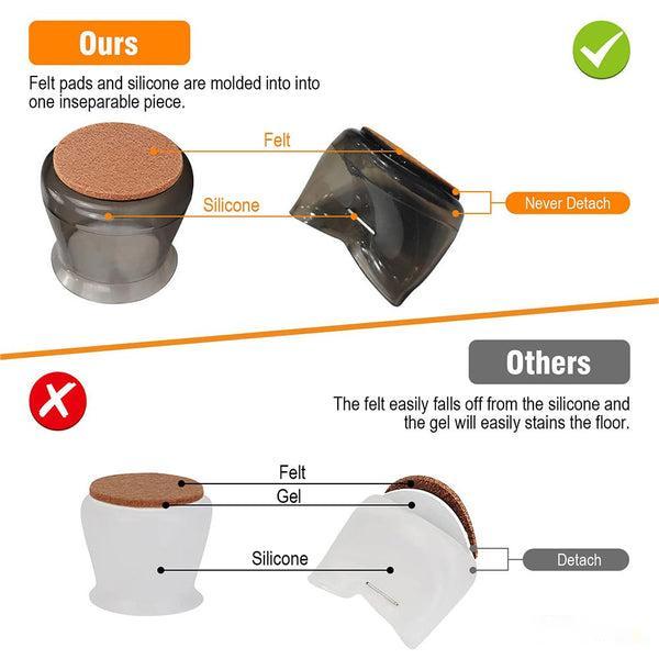 - The Felt Pad No Longer Fall Off: The traditional felt furniture pads use the gel which is not strong enough so that the felt pads are easy to slide off and stain your floor. Upgraded furniture pads for hardwood floors mold the felt pads and the silicone into one inseparable piece, no gel and no nails. You are no longer to worry about the problem of falling off.