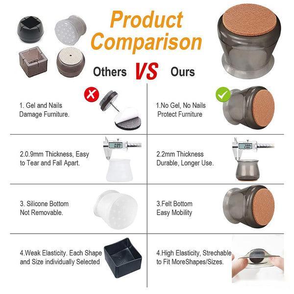 - Upgraded Materials: Different from the 1mm thick silicone chair leg protectors on the market, our silicone chair leg floor protectors are thickened to 2mm so that it becomes more durable, more flexible and won't tear or turn discolor when stretched.