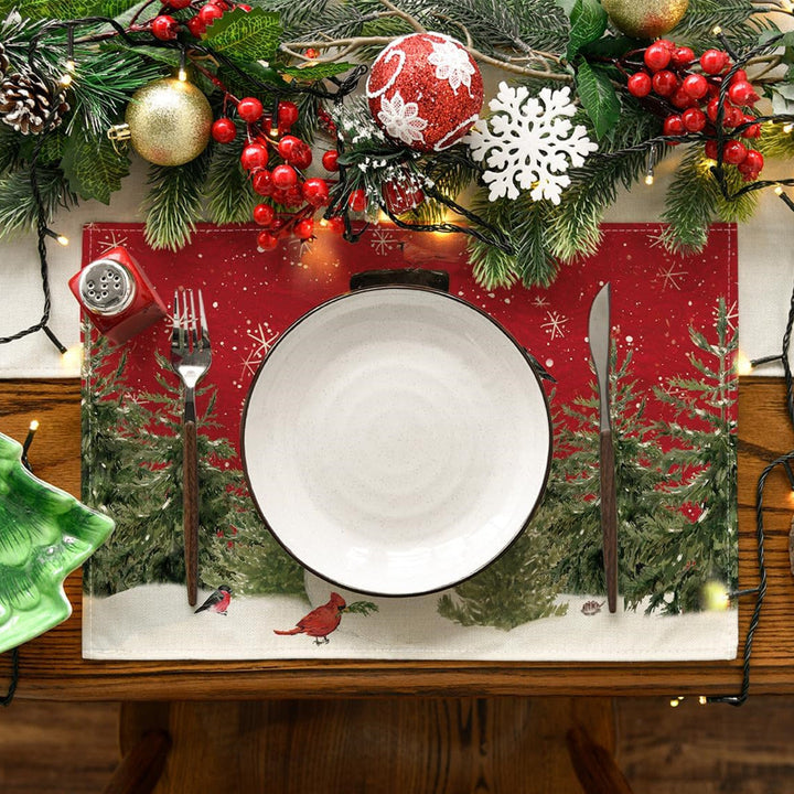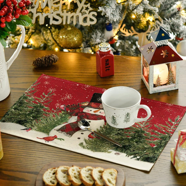 Snowman Cardinals Trees Christmas Placemats for Dining Table