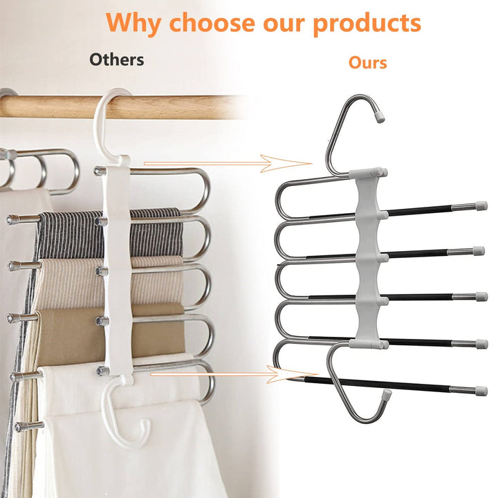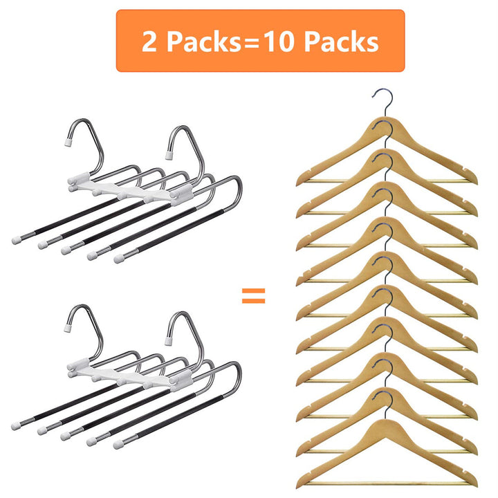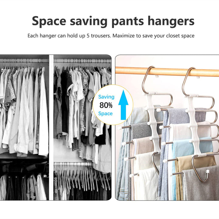 Pants organizer, pack of 2. Each pants rack can be hanged for 5 jeans/trousers/scarf at same time. Closet organizers and storage , Save at least 80% of space and keep your wardrobe clean and orderly.