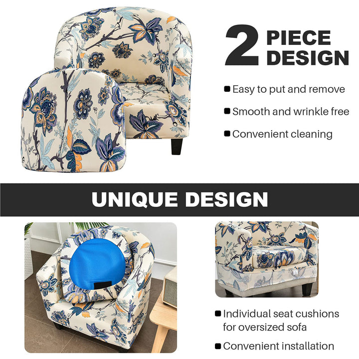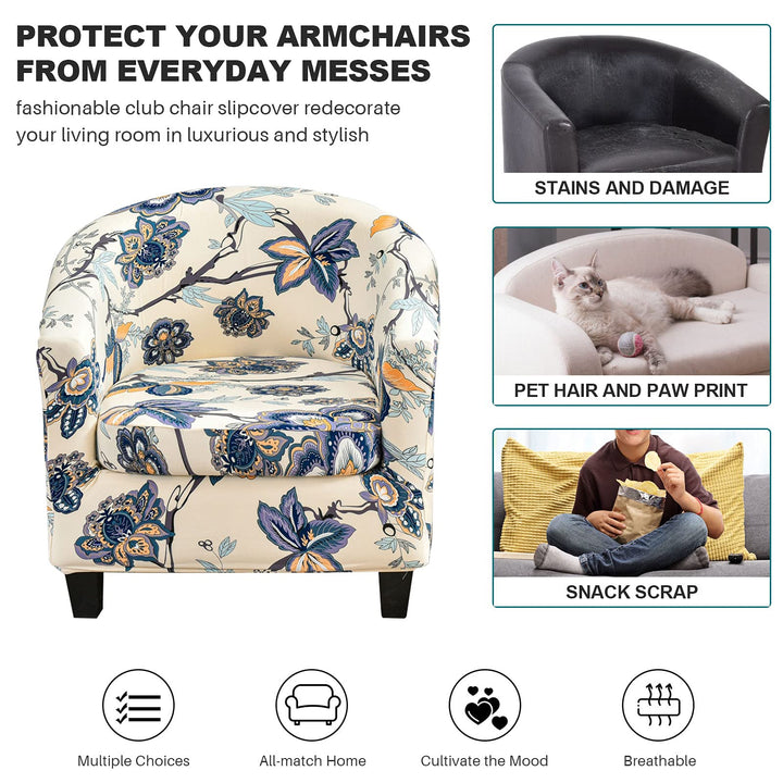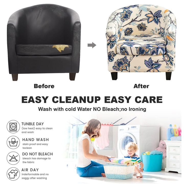 [2-in-1 Upgraded Design & Easy to Remove] 2-in-1 upgraded design tub chair cover, the cushion cover and sofa cover are separate, so you don't need to adjust it constantly. By covering the cushion separately, not only can excess fabric be tucked under the cushion, but also the bounce problem is absolutely solved. The set of 2 tub chair covers are very easy to remove. Therefore, the club chair cover is very convenient to wash.