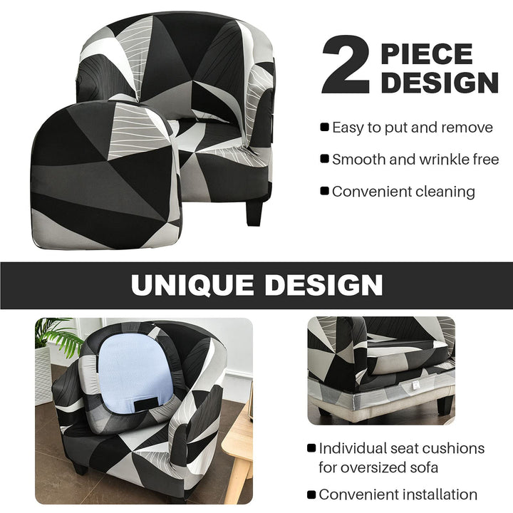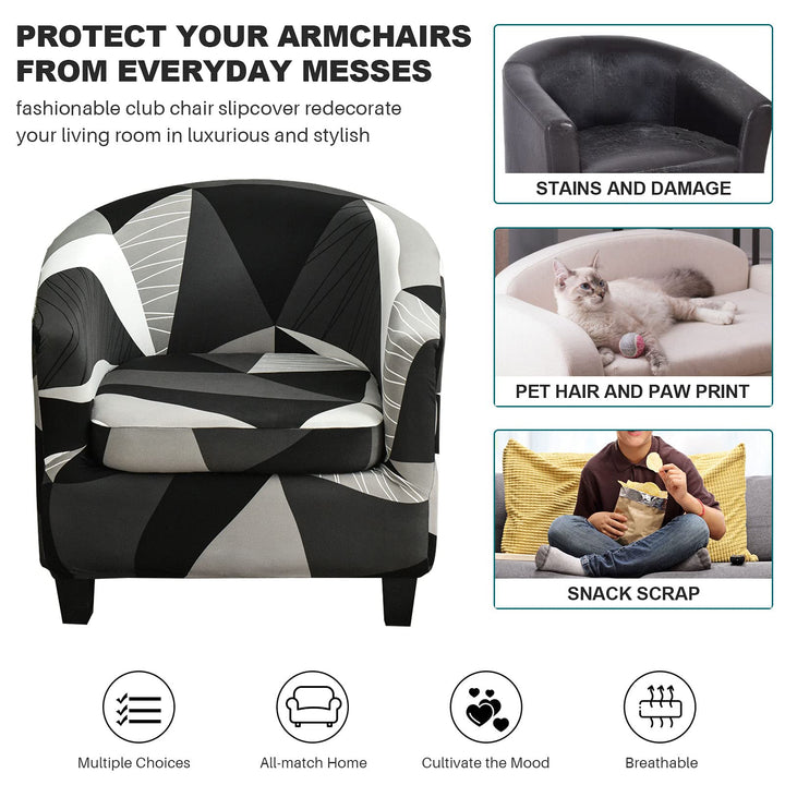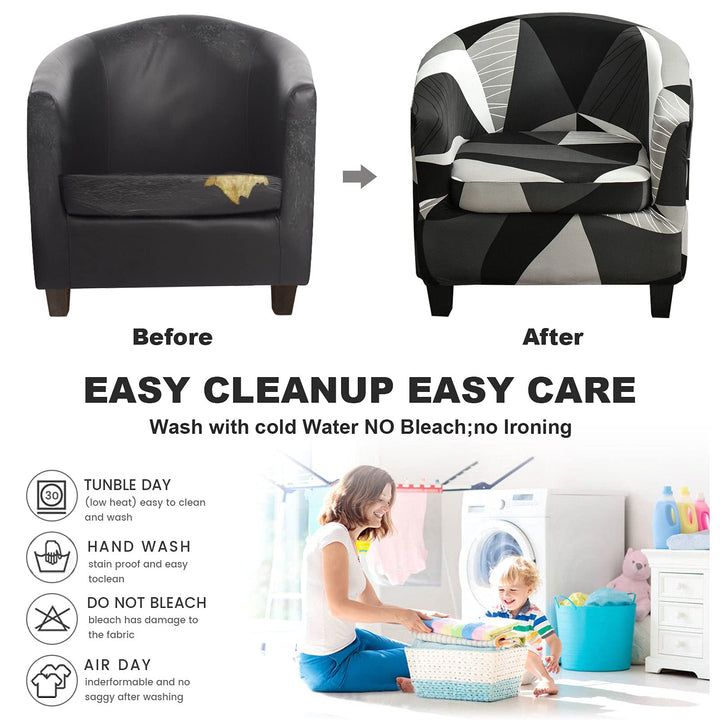 [2-in-1 Upgraded Design & Easy to Remove] 2-in-1 upgraded design tub chair cover, the cushion cover and sofa cover are separate, so you don't need to adjust it constantly. By covering the cushion separately, not only can excess fabric be tucked under the cushion, but also the bounce problem is absolutely solved. The set of 2 tub chair covers are very easy to remove. Therefore, the club chair cover is very convenient to wash.