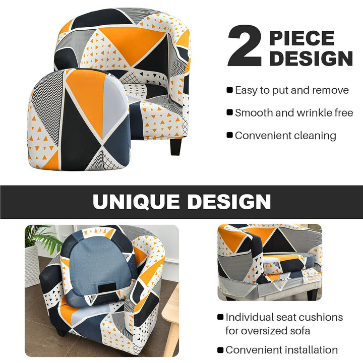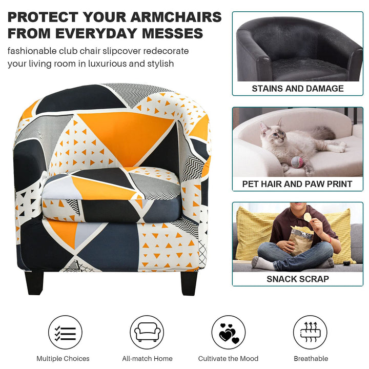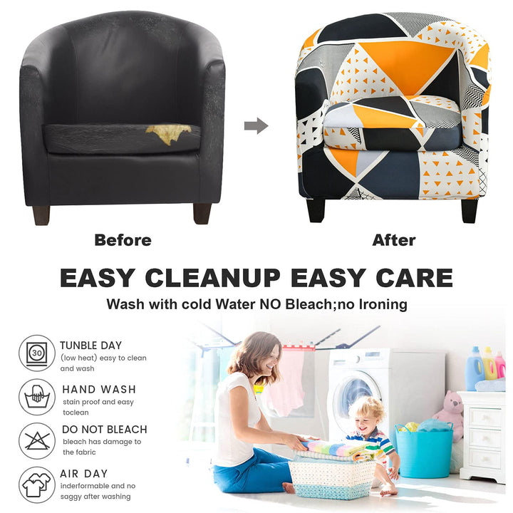 [2-in-1 Upgraded Design & Easy to Remove] 2-in-1 upgraded design tub chair cover, the cushion cover and sofa cover are separate, so you don't need to adjust it constantly. By covering the cushion separately, not only can excess fabric be tucked under the cushion, but also the bounce problem is absolutely solved. The set of 2 tub chair covers are very easy to remove. Therefore, the club chair cover is very convenient to wash.