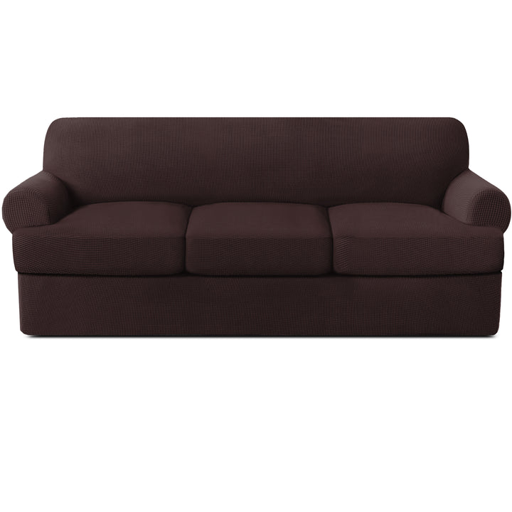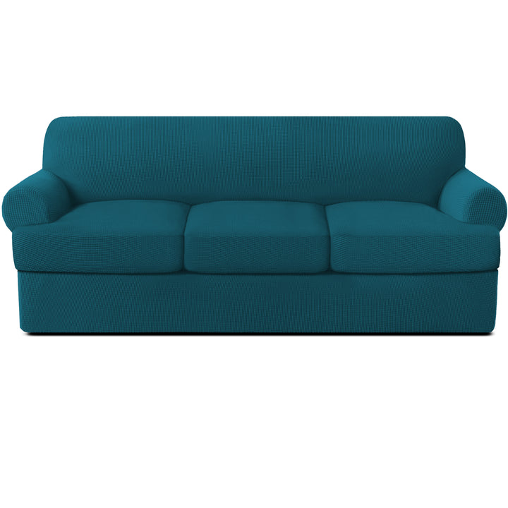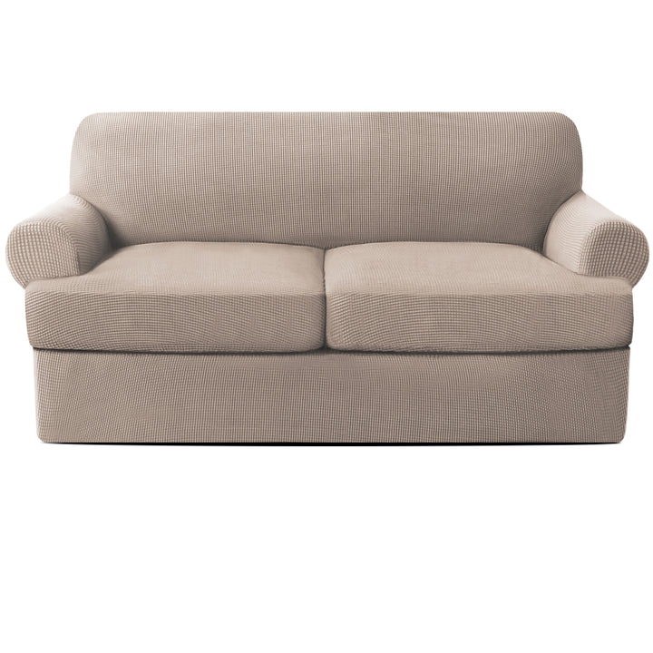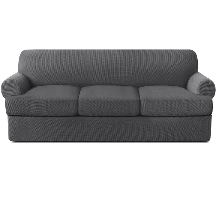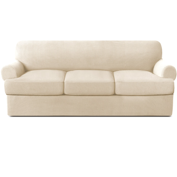[SUPERIOR FABRIC&STRETCH FIT]: The sofa covers for T cushion couch are crafted from 85% Polyester/15% spandex thicken fabric with small checks pattern. High elasticity and soft, more flexible and easy to stretch that helps to fit the shape of your sofa and cushions. The exclusive T design will be more reasonably suitable for your T cushion furniture![ENTIRE PROTECTION]: Neathouz sofa slipcovers are crafted from thicken soft jacquard fabric with high-quality Lycra. More stretchy and durable, ensuring both good function and comfort. Various adorable colors are available to decorate your sofa. Having such a sofa cover not only protects your sofa from spills and stains, but also gives your sofa a new rejuvenated look if your sofa looks a bit broken or not so new.