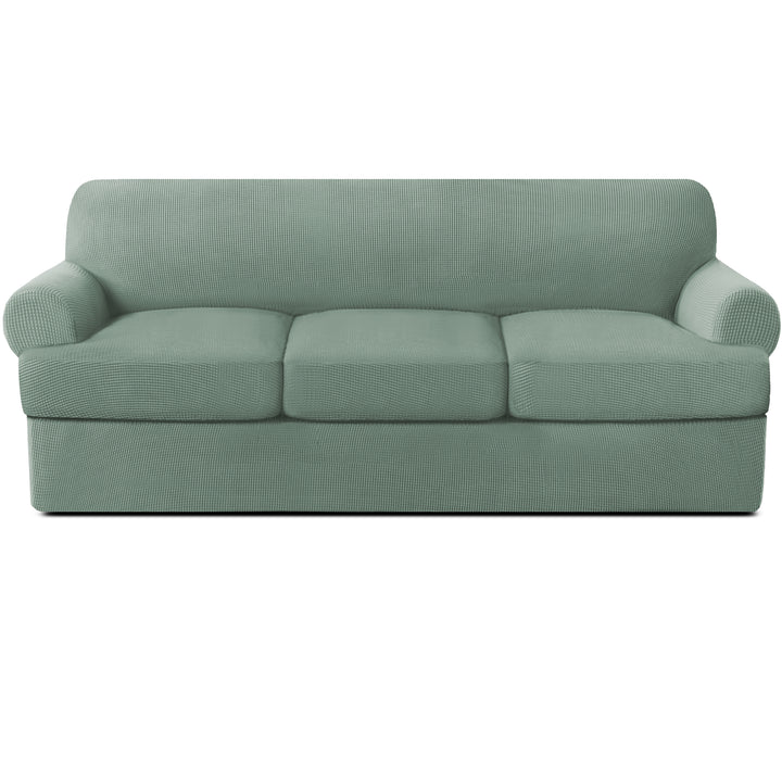 [PERFECT DESIGN]: The fitted sofa slipcovers are specially designed sofas with separate cushions, suitable for a variety of sofa types, such as T cushion sofas, fabric sofa, leather sofa, etc. Both the base sofa cover and the seat cushion covers are equipped with elastic bands at the bottom, which can firmly wrap your sofa in place and will not cause slipping and wrinkles.