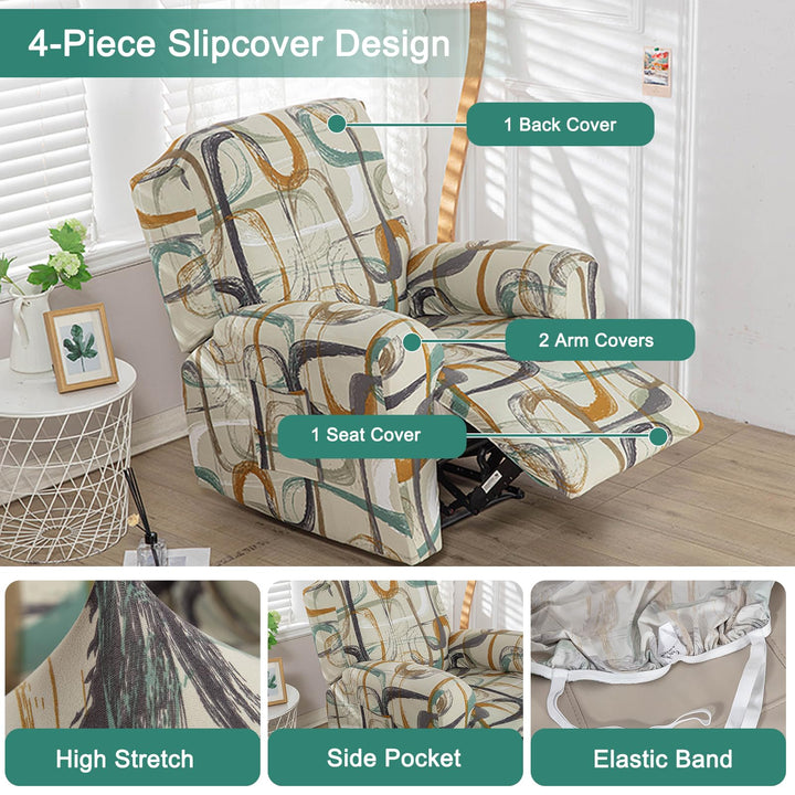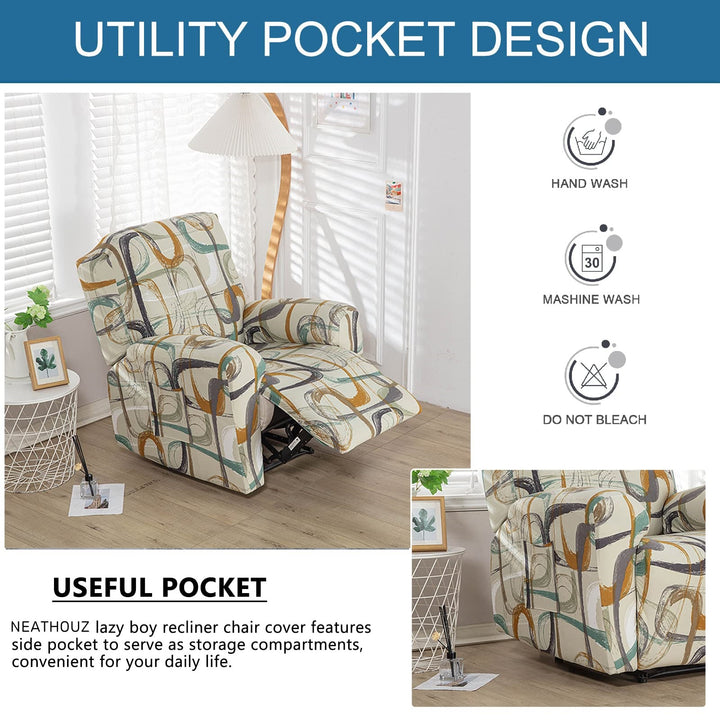 Stretch Printed Recliner Sofa Covers Furniture Protector with Pocket