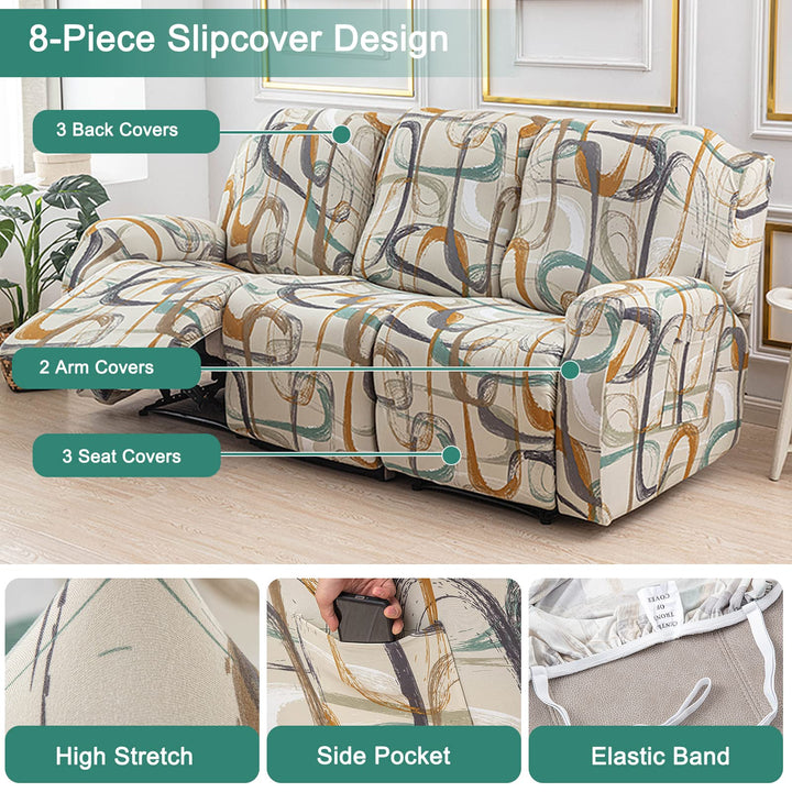 【EXCELLENT FABRIC】The 1/2/3 Seater Recliner slipcover Made of high elastic jacquard fabric so that it is very stretchable,softer and more comfortable.good breathability while retaining.adds a touch of elegance to your home décor.