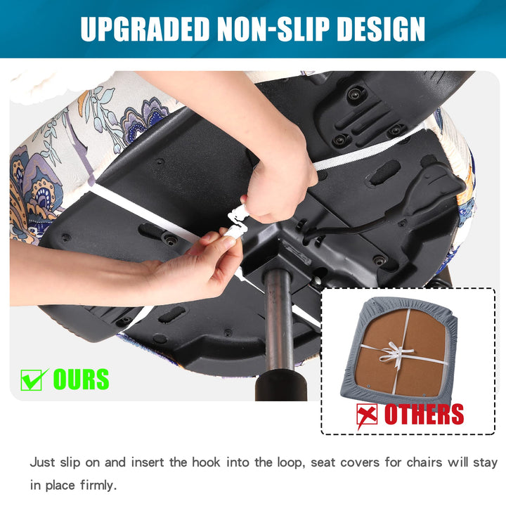 ★ Upgraded Non-slip Design: This stretchy desk chair cover is equipped with elastic band with hook for faster install and anti-slip. Just slip on and insert the hook into the loop, seat covers for chairs will stay in place firmly.