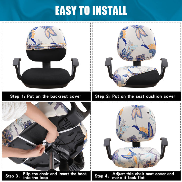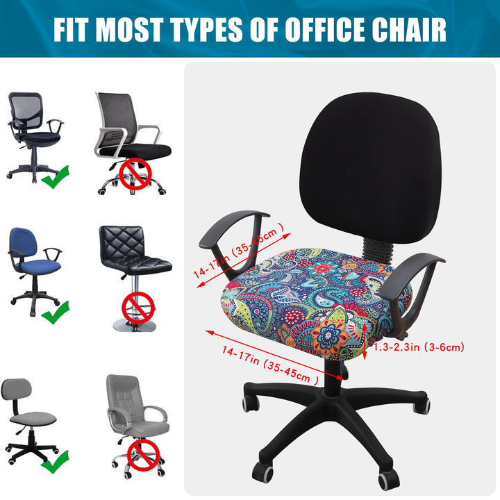 ★ Stretchy & Soft Fabric: Printed office chair slipcovers are made of 92% polyester and 8% spandex, soft and stretchable, durable and long lasting. High elastic that recovers quickly and allows to fit perfectly for most office chairs.