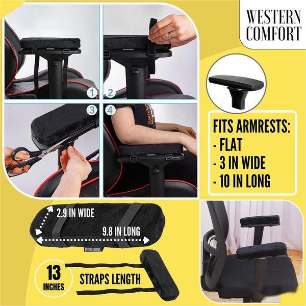 - If your office chair arm rest is flat and close to 3 Inch wide and 10 Inch long, this plush-covered elbow cushion with anti-sliding bottom & adjustable 13Inch long velcro straps is the right choice as your new office chair armrest covers.