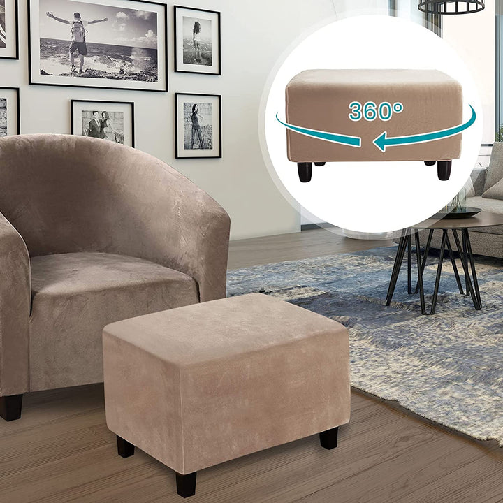 GREAT FIT: This innovated 1 piece ottoman cover is crafted from luxurious high stretch velvet plush fabric.